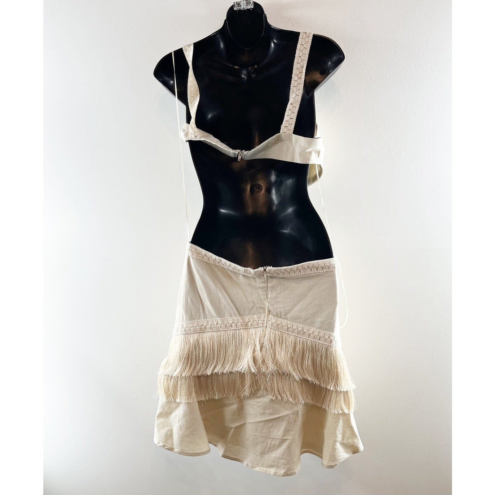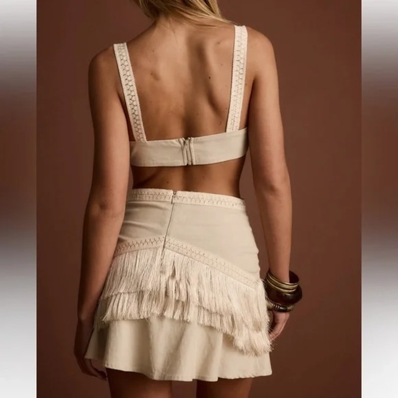 12th Tribe Haven Fringe Cutout Mini Dress Cream XL
