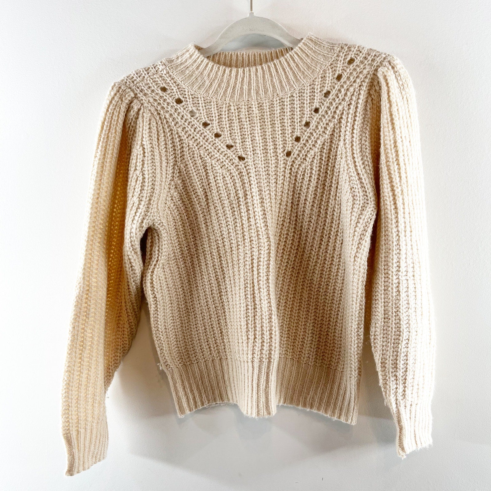 525 Crewneck Knit Pullover Long Sleeve Sweater Cream Small