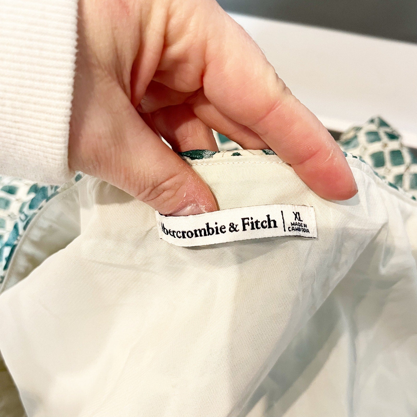 Abercrombie Crinkle Geometric Lined Maxi Slip Skirt Green XL
