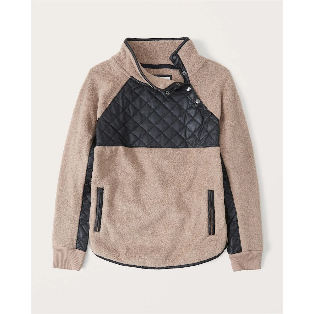 Abercrombie & Fitch Asymmetrical Snap Pullover Fleece Jacket Brown Black Large