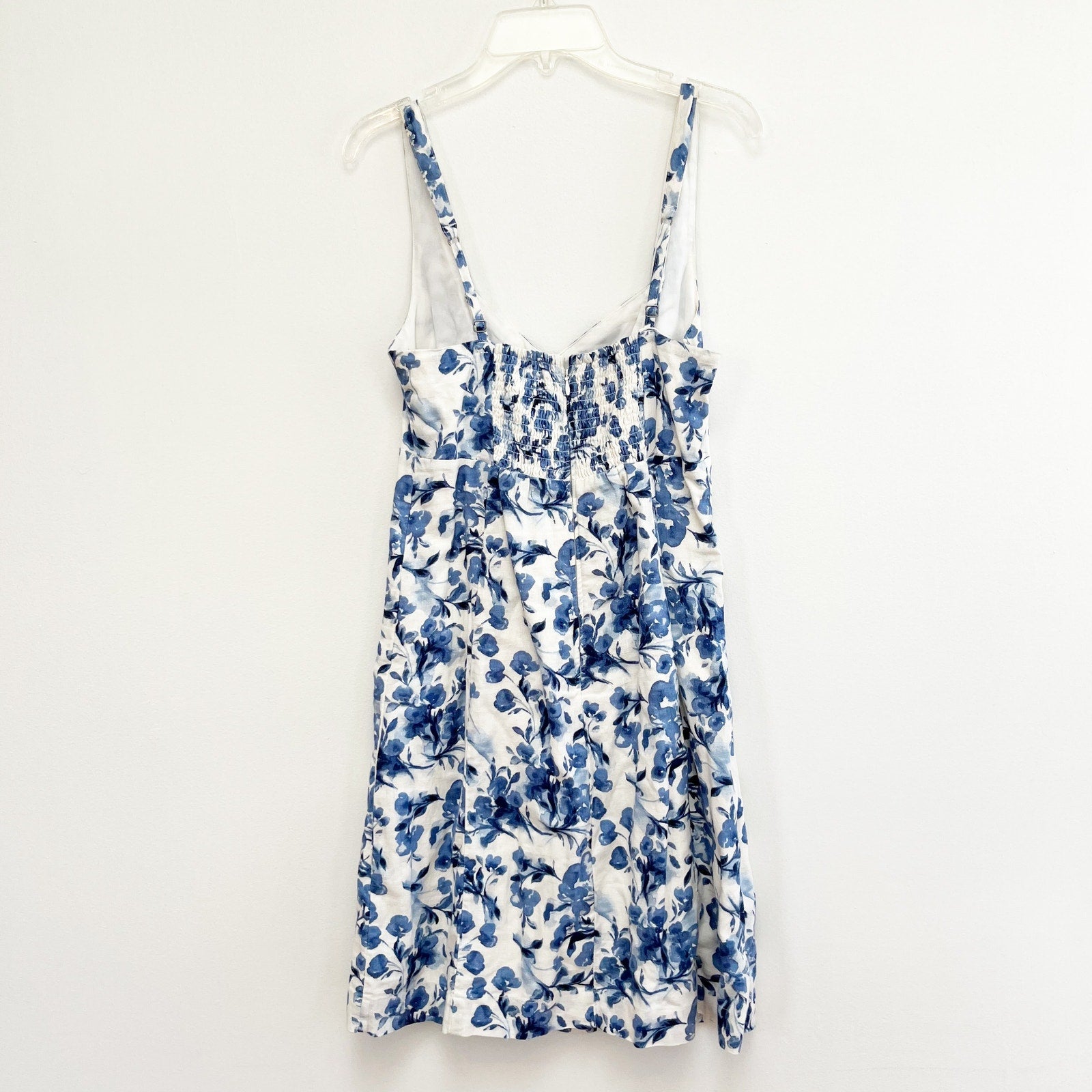 Abercrombie & Fitch Floral Mini Linen Blend Dress Blue White Small Tall