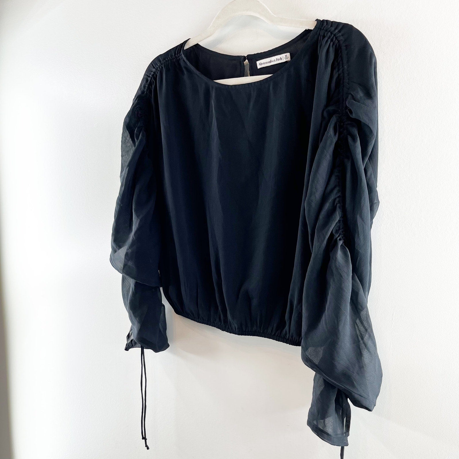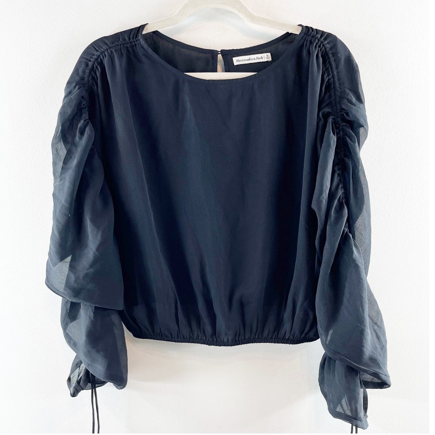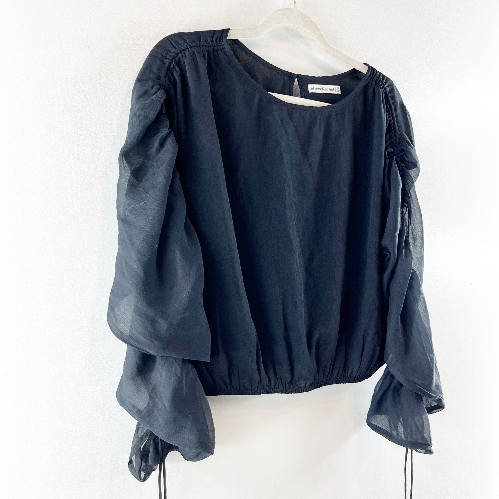 Abercrombie & Fitch Long Sleeve Ruched Gathered Elastic Hem Black Medium