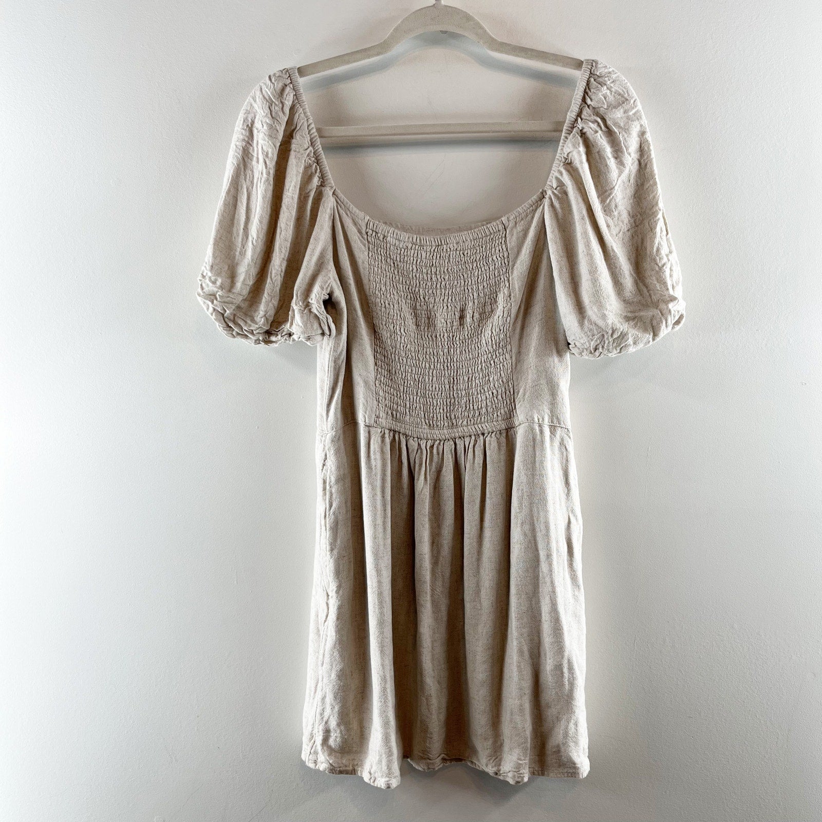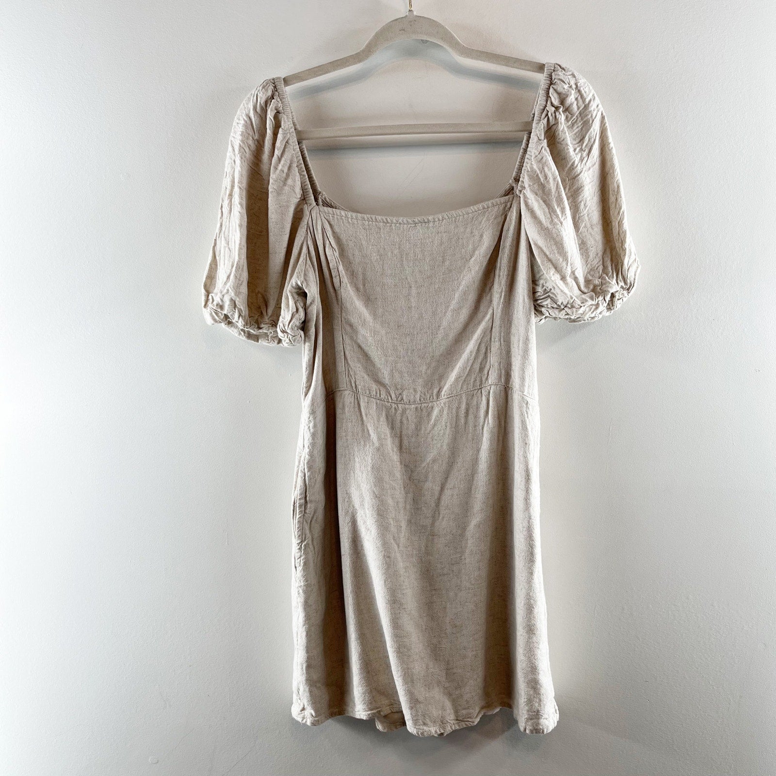Abercrombie & Fitch Square Neck Puff Short Sleeve Mini Dress Tan Medium
