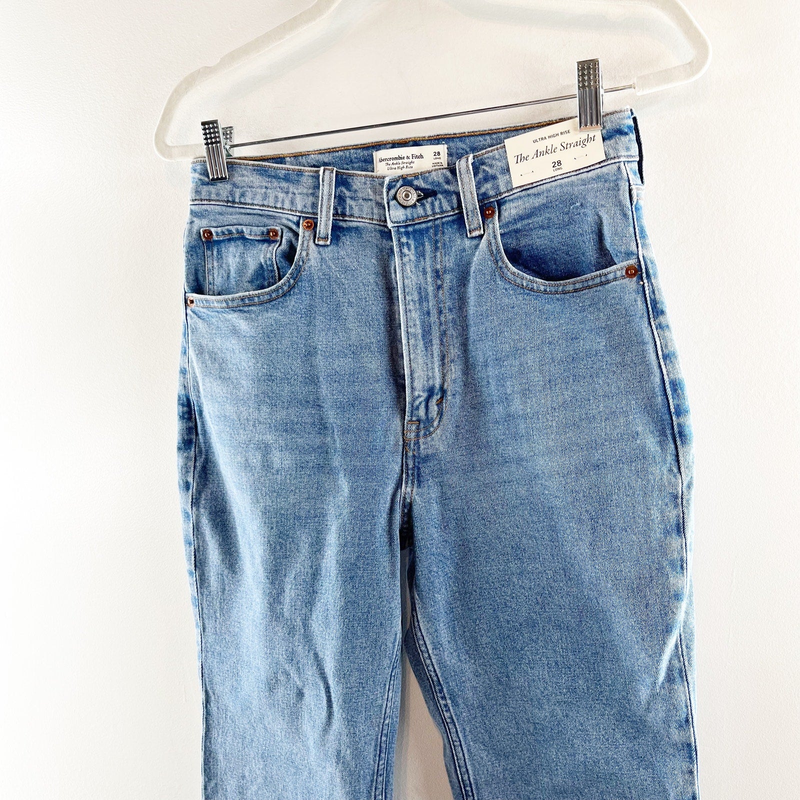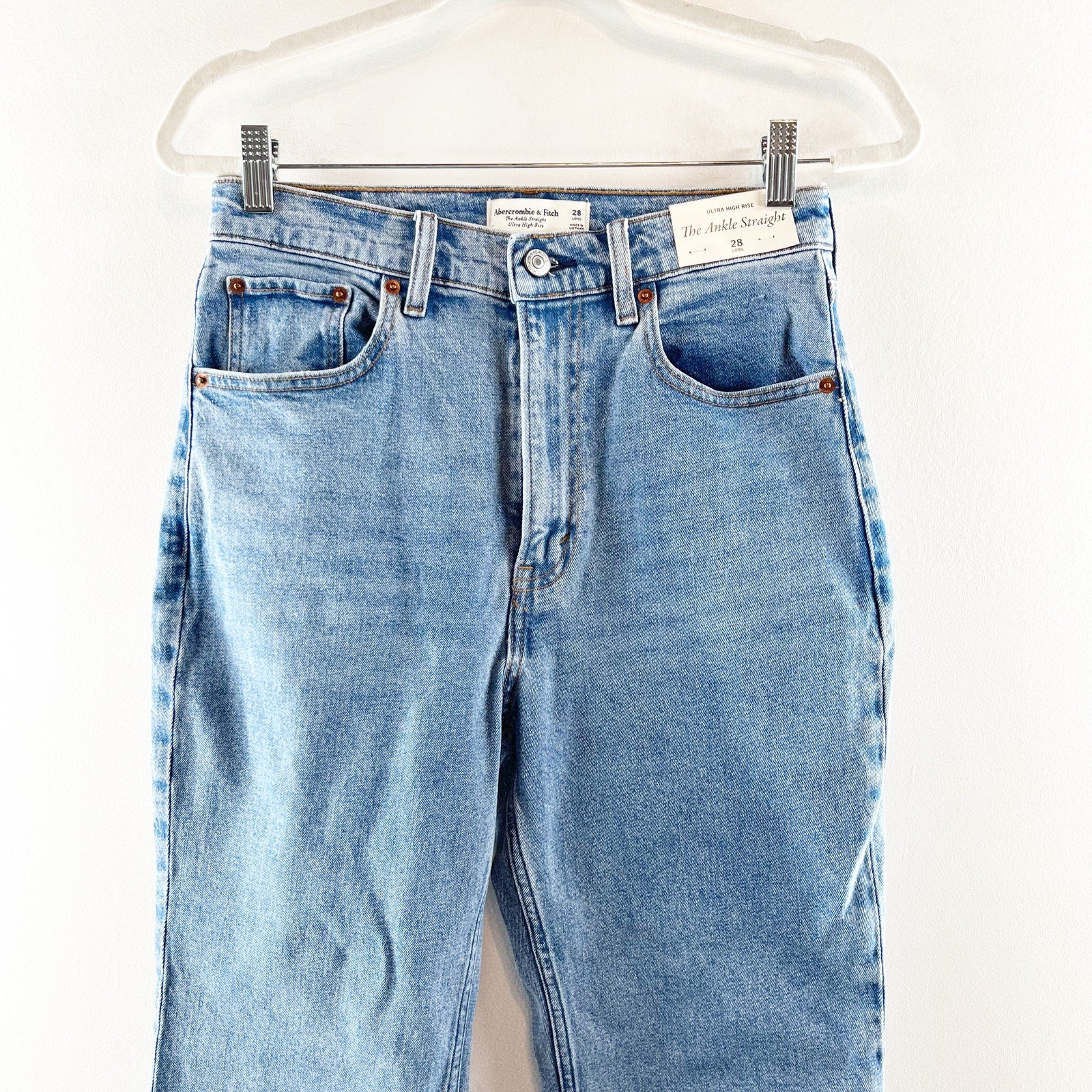Abercrombie & Fitch Ultra High Rise Denim Ankle Straight Jeans Blue 28 Long