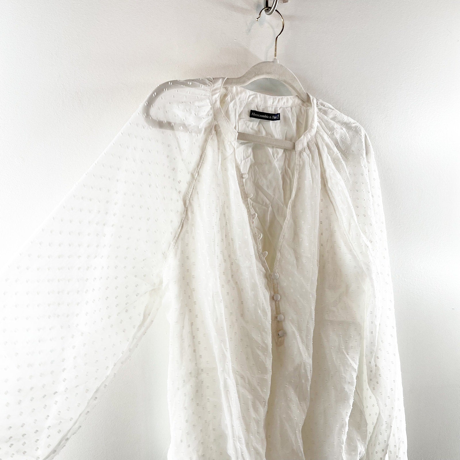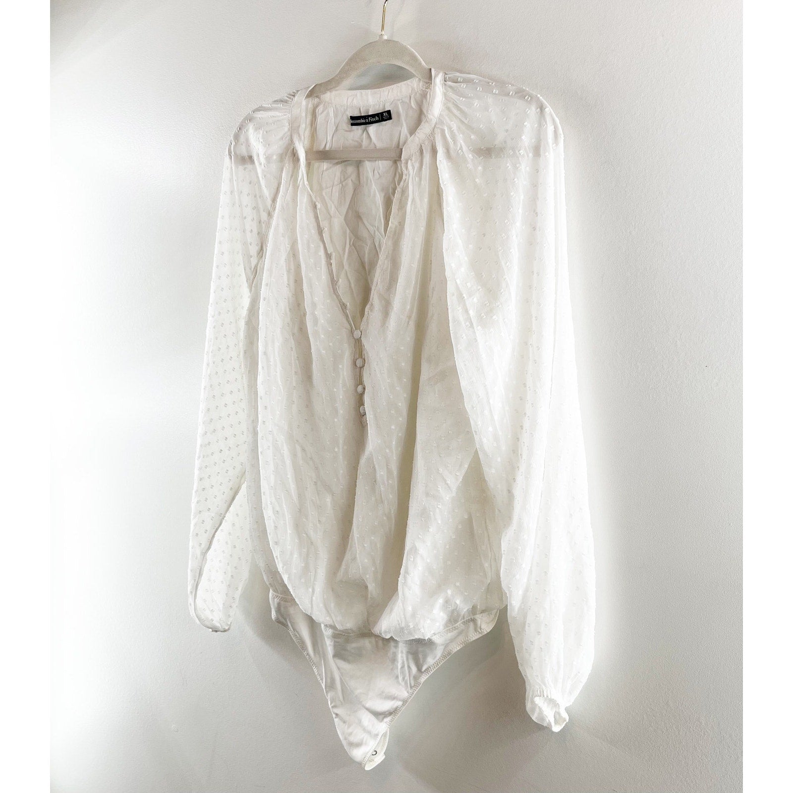 Abercrombie Sheer Balloon Long Sleeve Button Front Blousson Bodysuit White XL