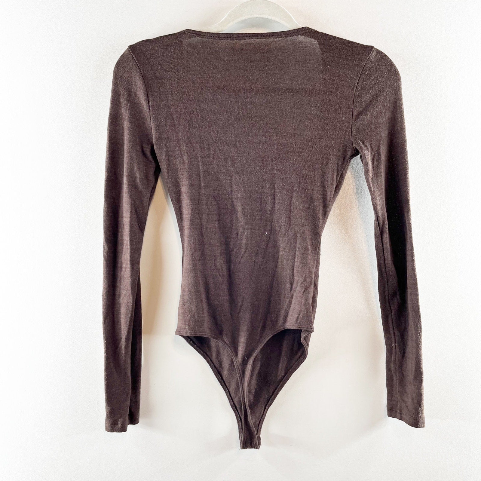 Abercrombie Square Neck Cozy Long Sleeve Bodysuit Top Brown XS