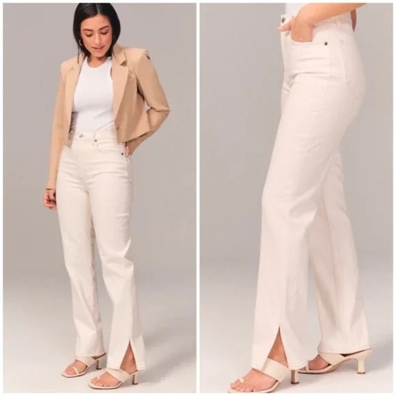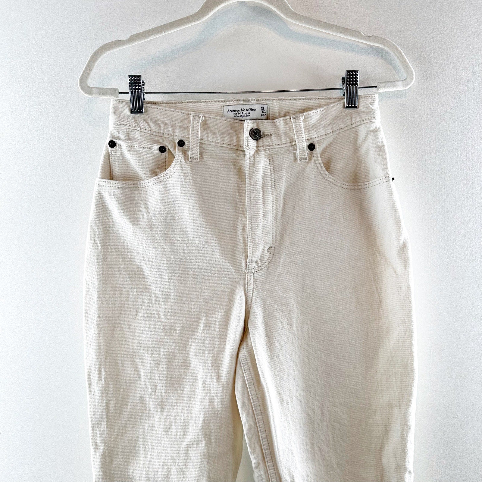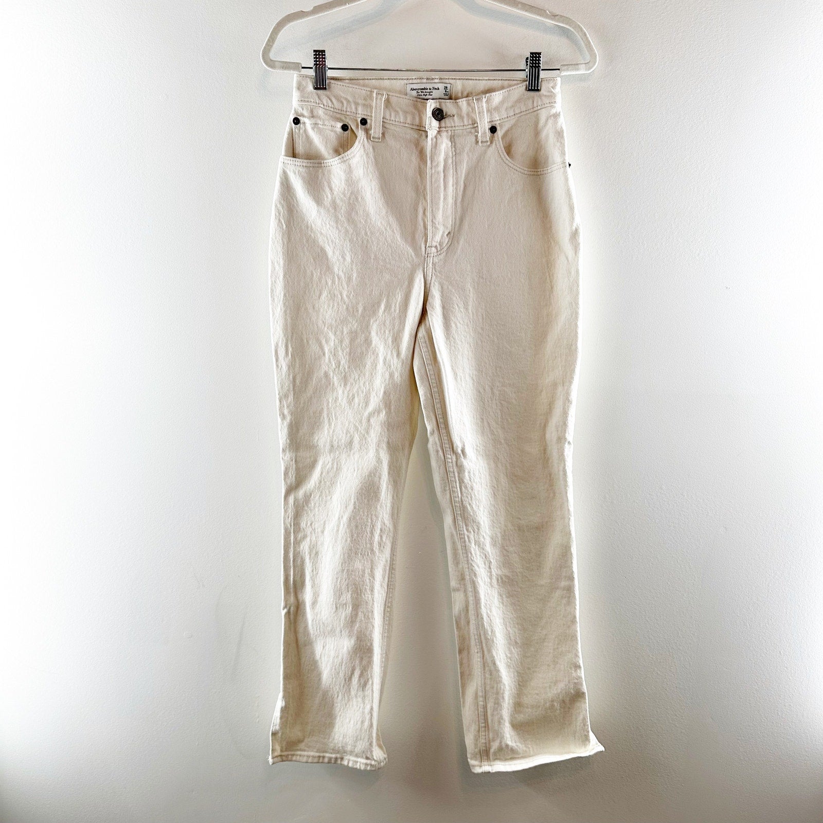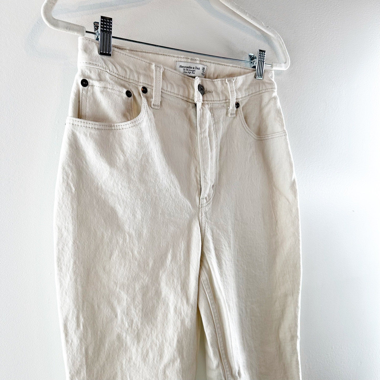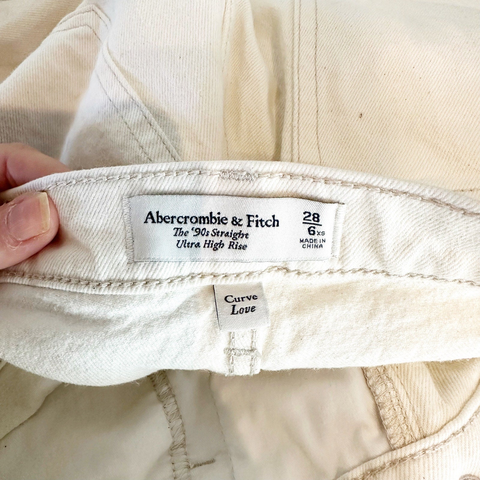 Abercrombie The 90's Straight Curve Love Ultra High Rise Jeans Cream 6 Petite