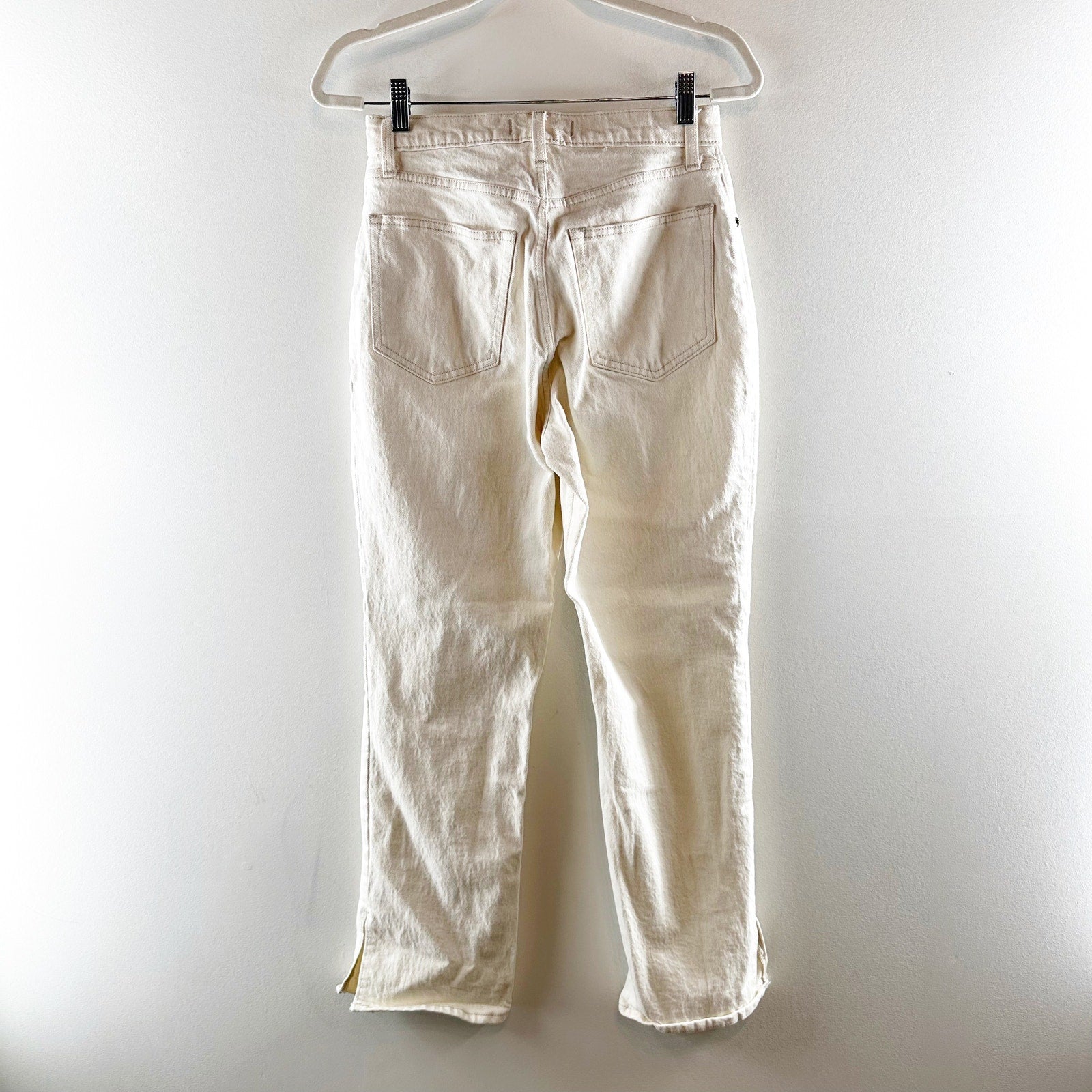 ankle, high waisted, bone, ecru, cream, ivory, off white, jeans, denim, cotton, straight leg, curve love, slit at hem