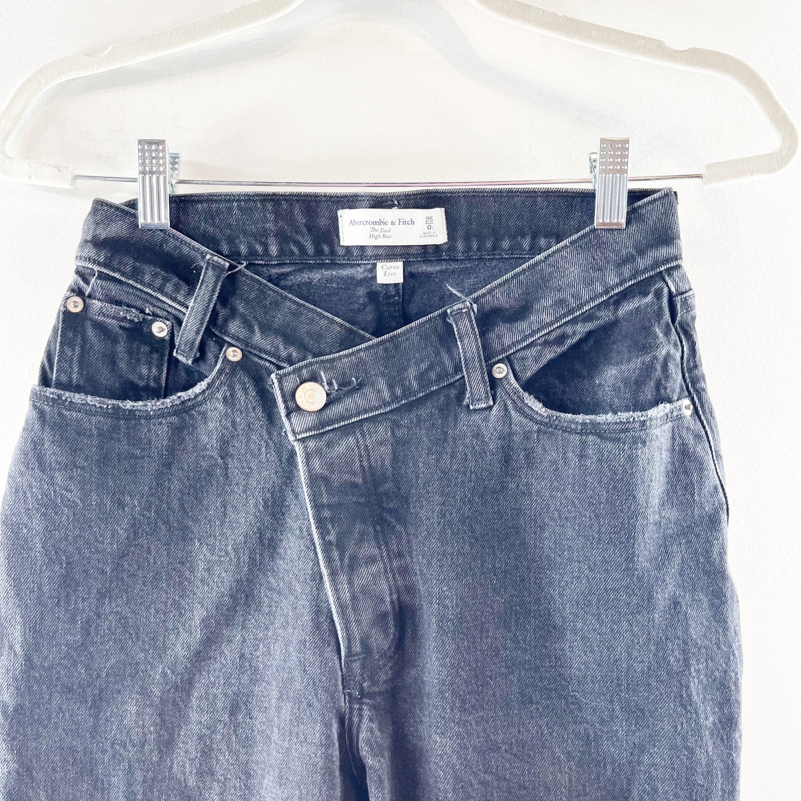 Abercrombie The Dad Curve Love Crossover Waist High Rise Jeans Black 25 Petite