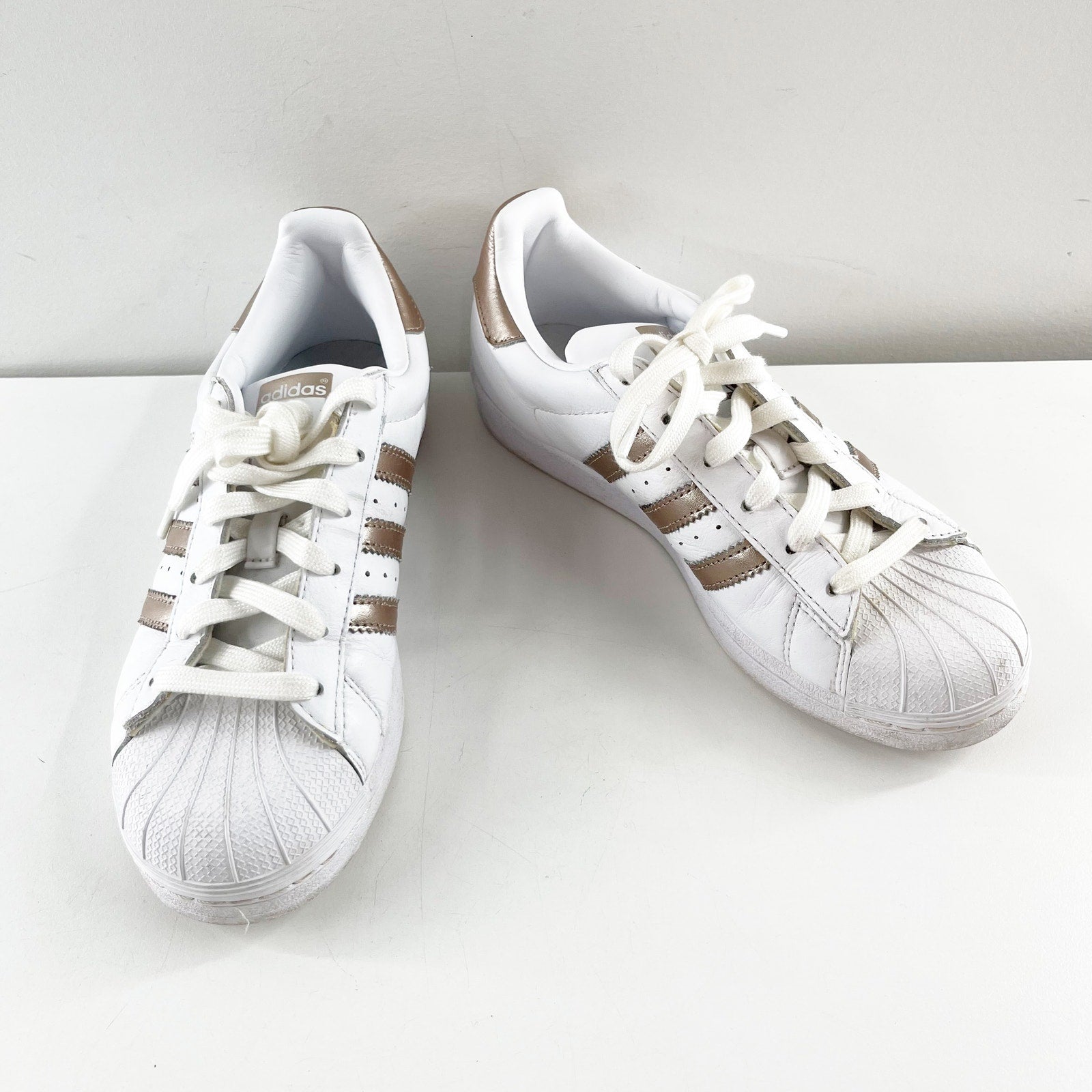 adidas Superstar Leather Low Top Comfort Sneakers White Gold US 6.5