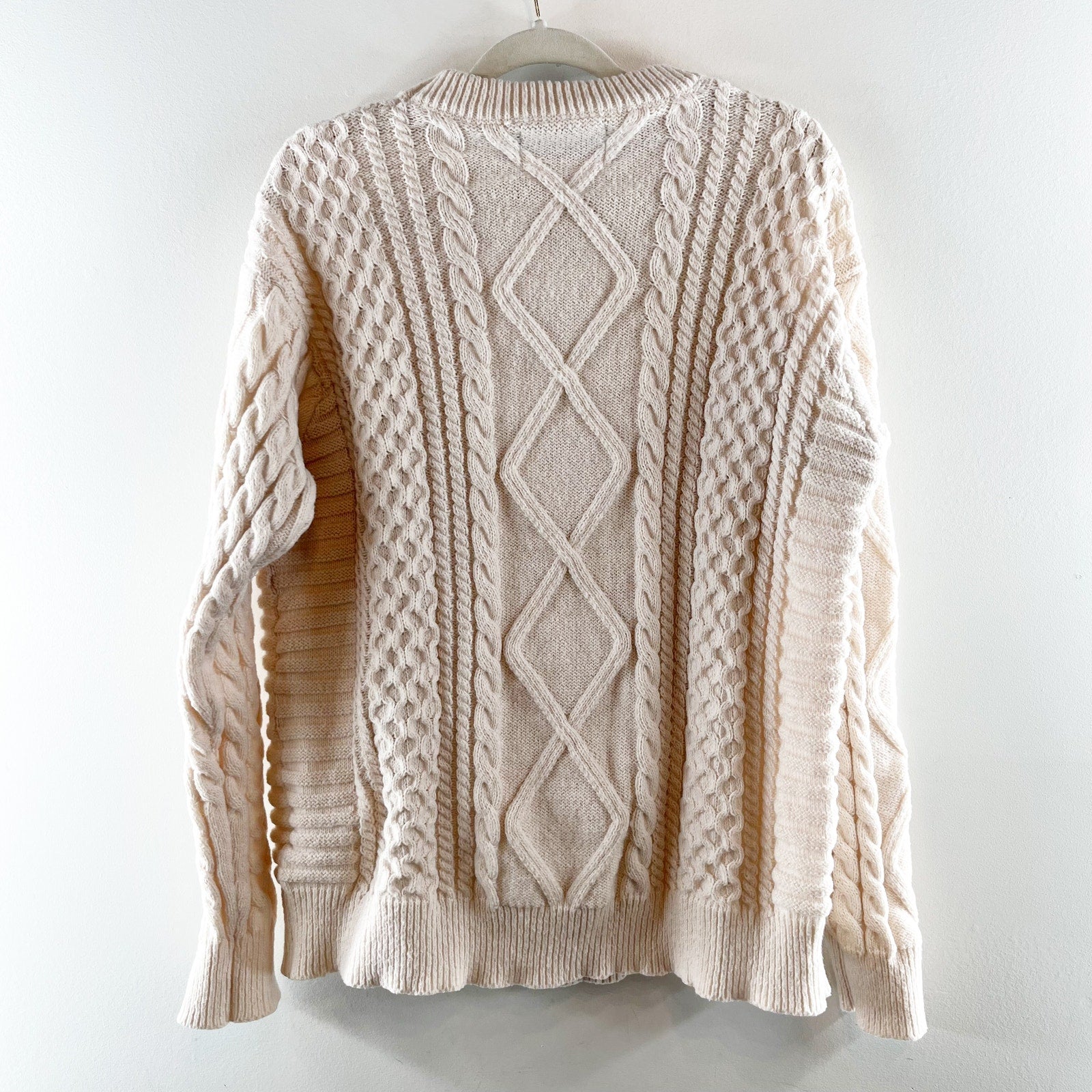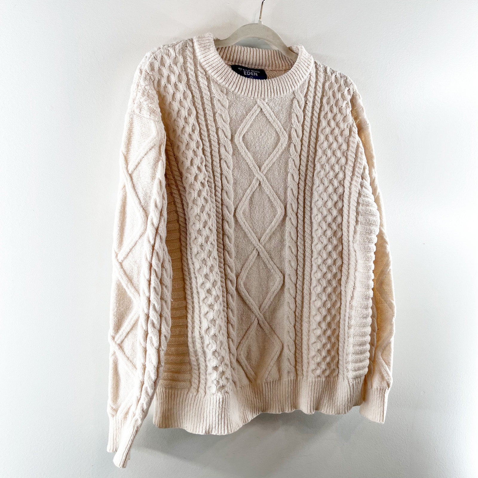 Aelfric Eden Crewneck Long Sleeve Cable Knit Sweater Ivory Cream XL