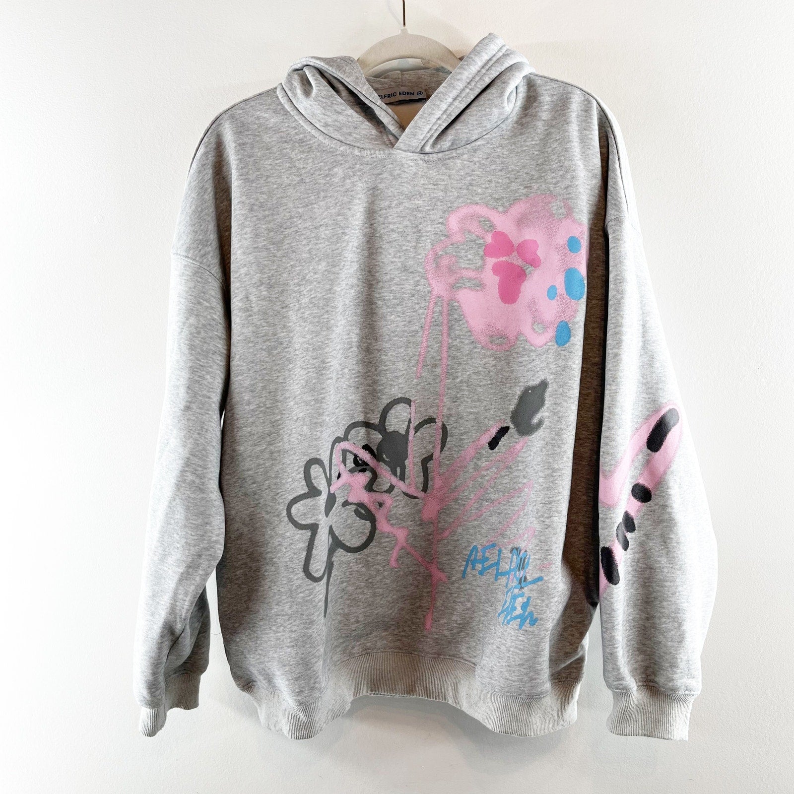 long sleeve, graffiti, cartoons, floral, pullover, relaxed, streetwear, hoodie, sweatshirt, loungewear, laid-back, casual, oversized