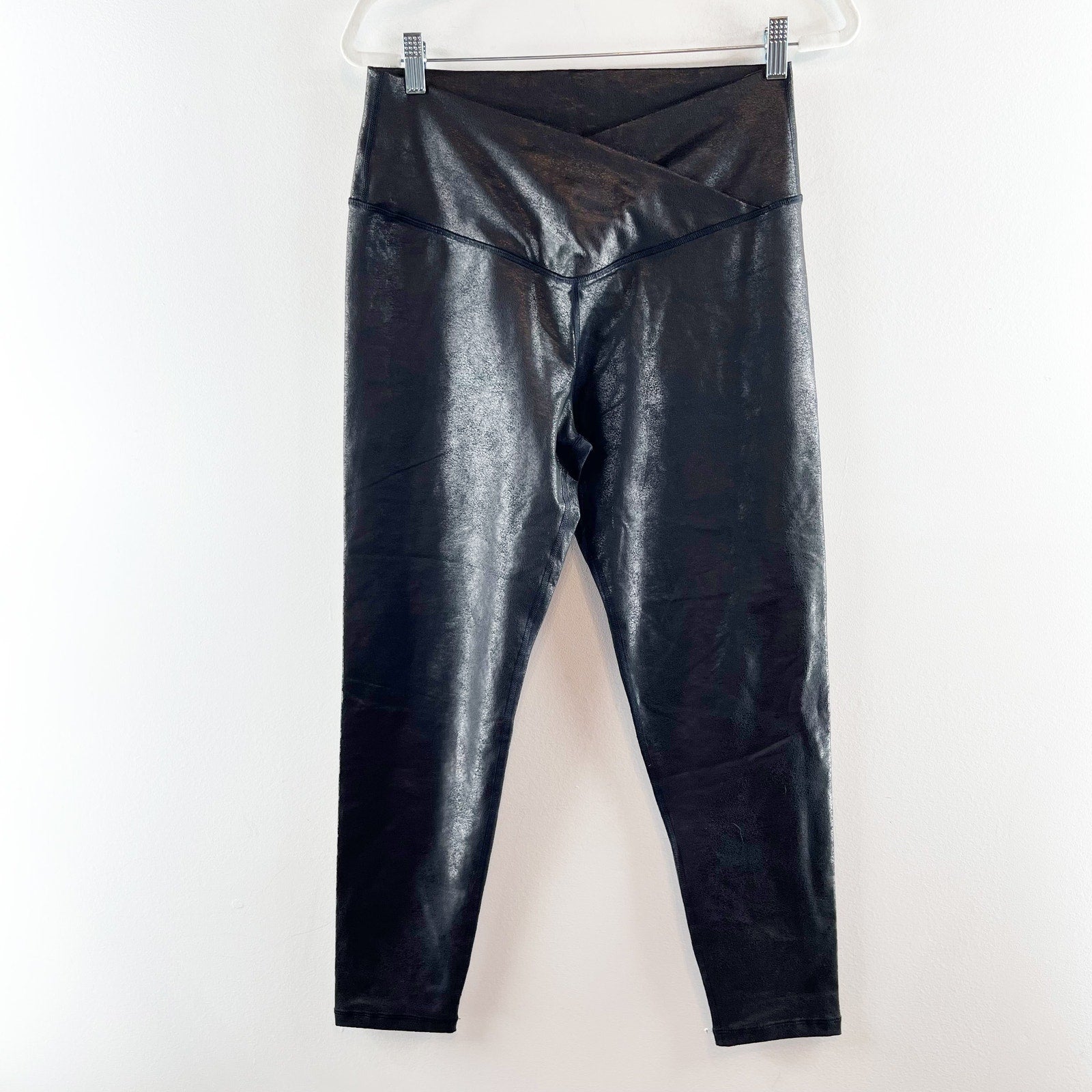 Aerie Crossover Waist Faux Leather Crackle Shine Leggings Black XL