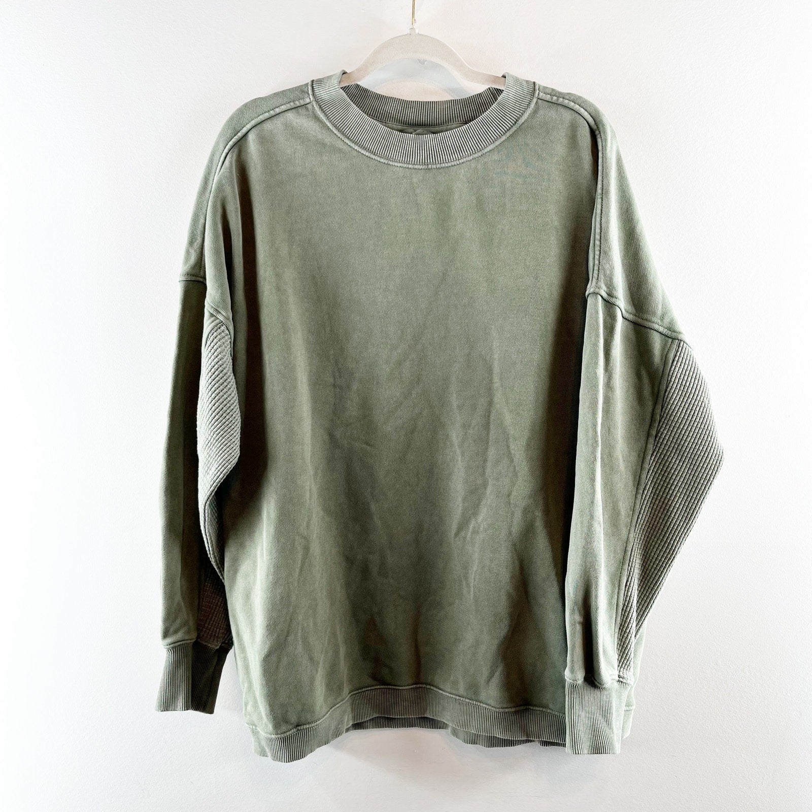 long sleeve, crewneck, green, waffle trim, oversized, sweatshirt, pullover