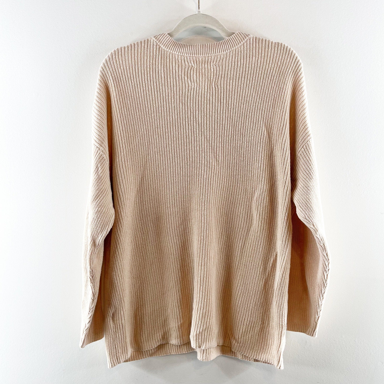 Aerie Long Sleeve Ribbed Oversized Henley Sweater Beige Tan Medium