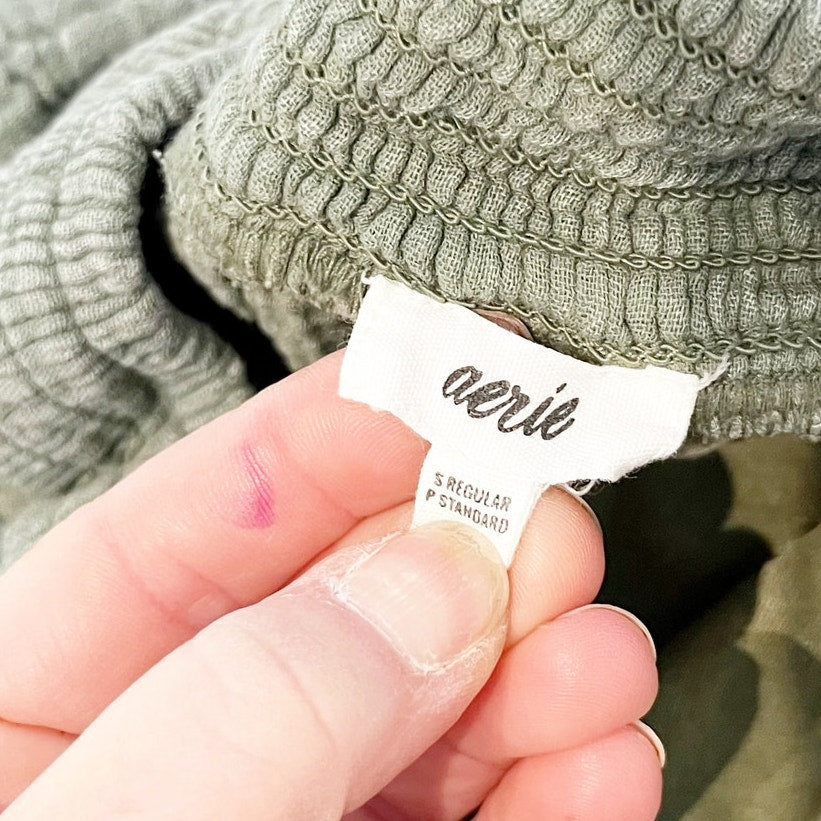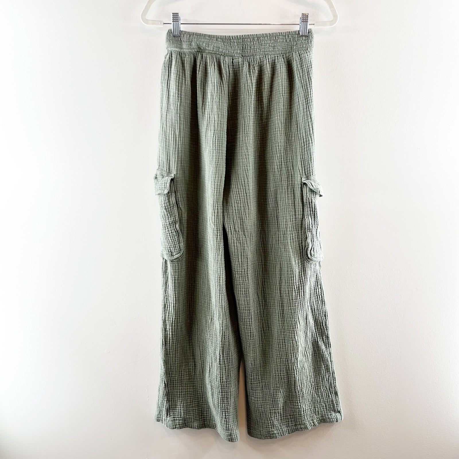 Aerie Pool to Party Gauzy Cotton High Rise Wide Leg Cargo Pants Green Small
