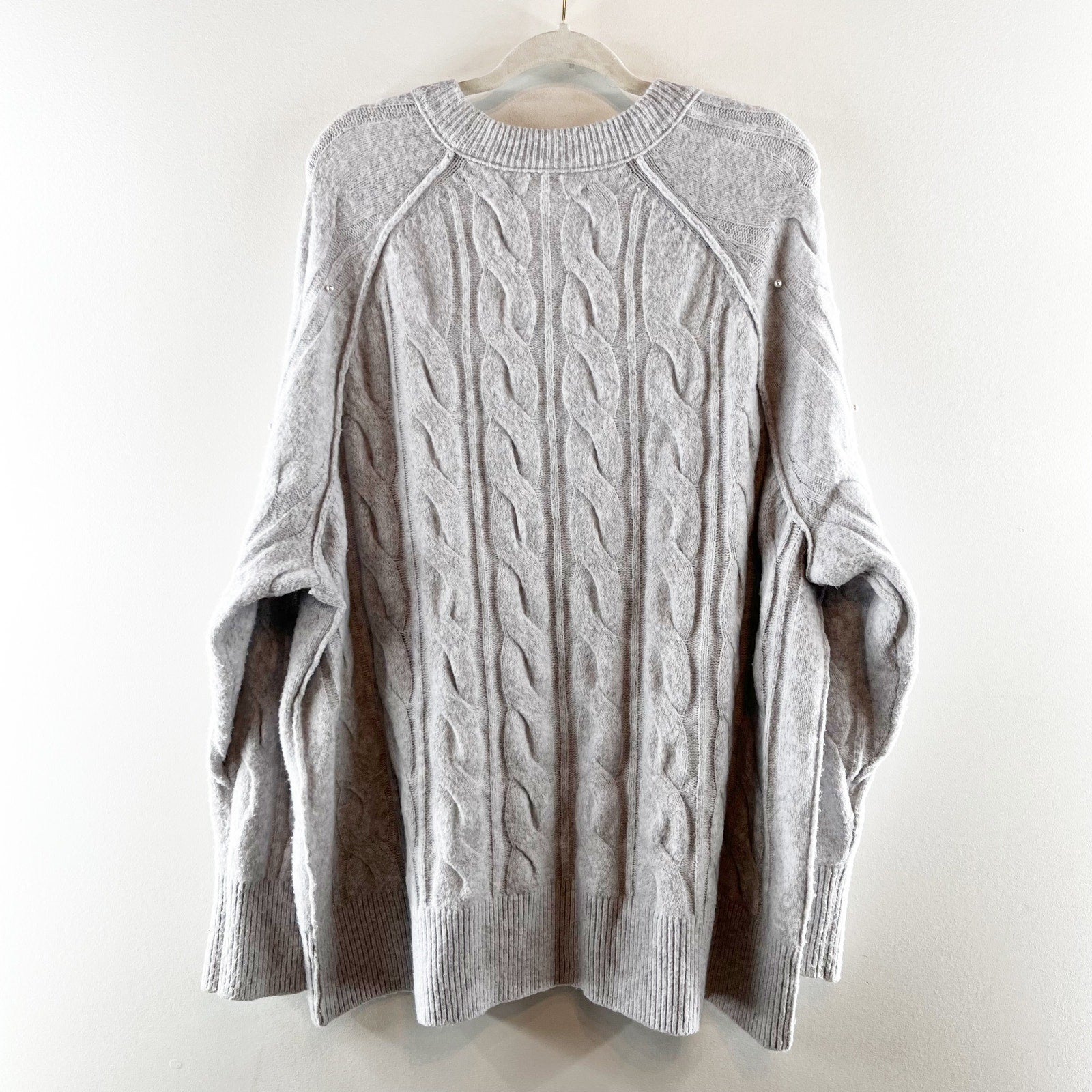 Aerie unReal Crewneck Long Sleeve Cable Pearl Detail Sweater Gray Large