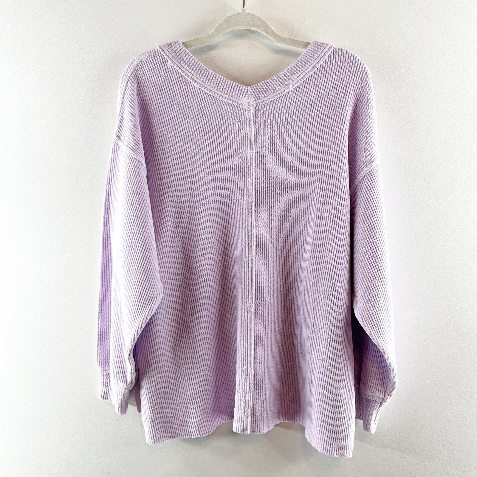Aerie Wonder Textured Waffle V Neck Oversized Sweatshirt Purple Small