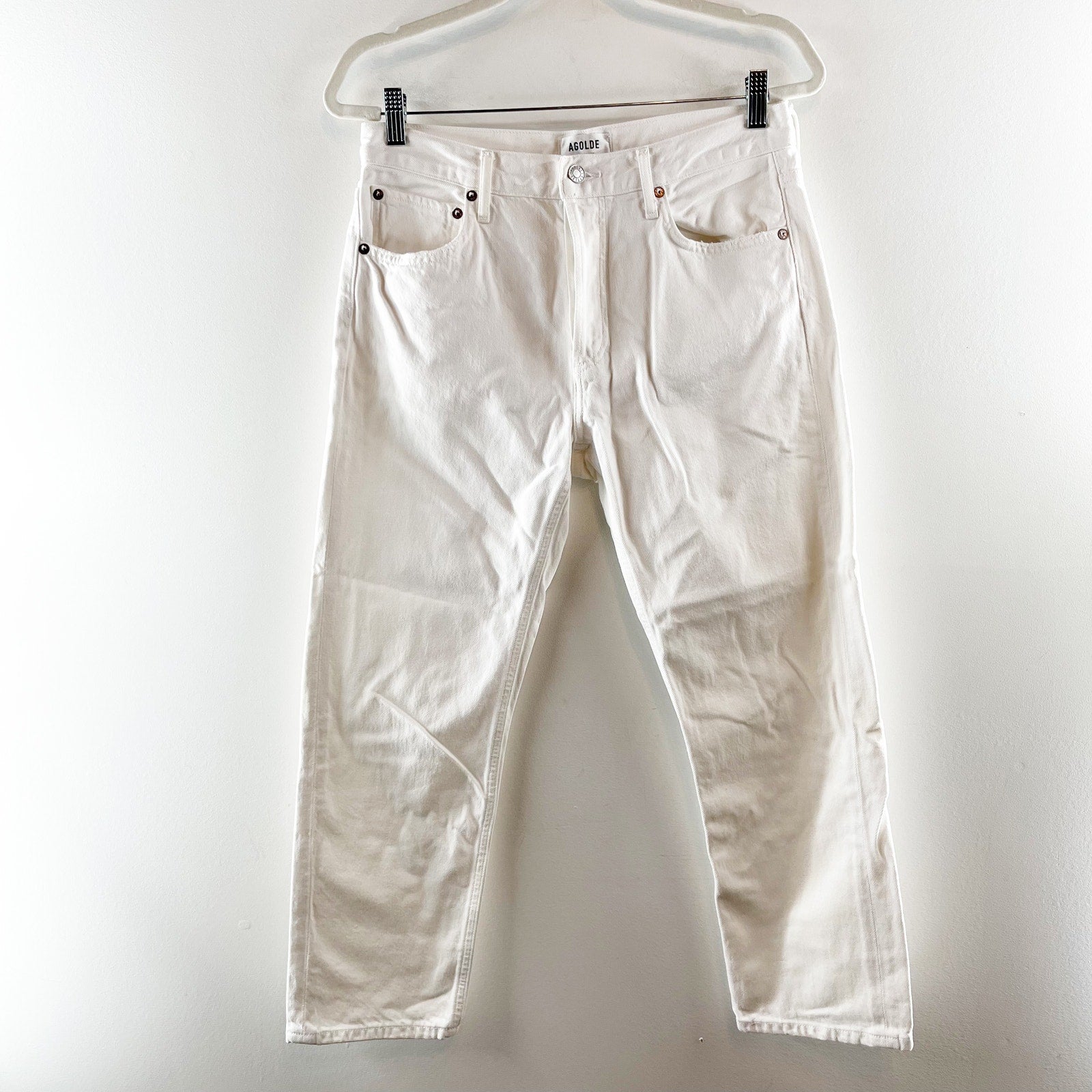 Agolde Parker High Rise Button Fly Crop Straight Leg Jeans White 27 / 4