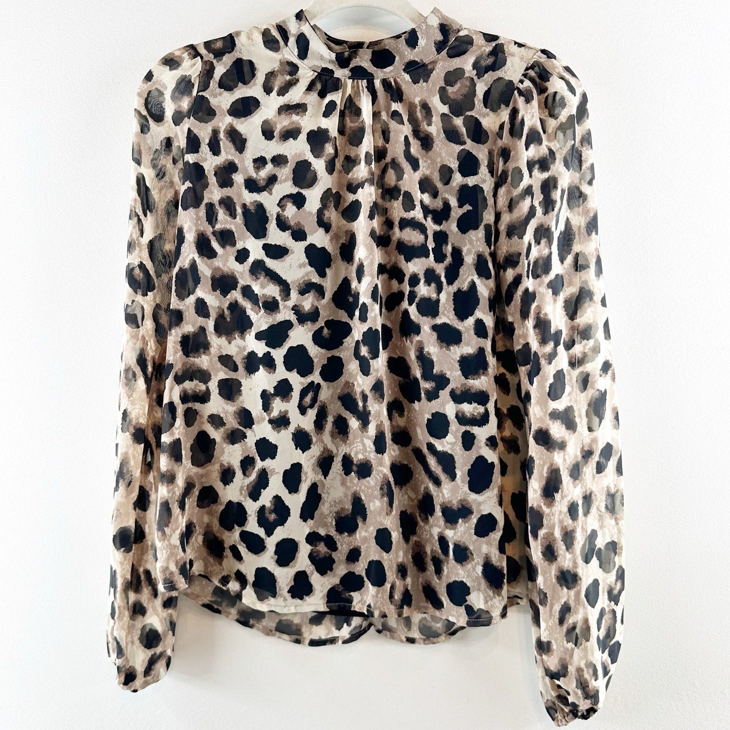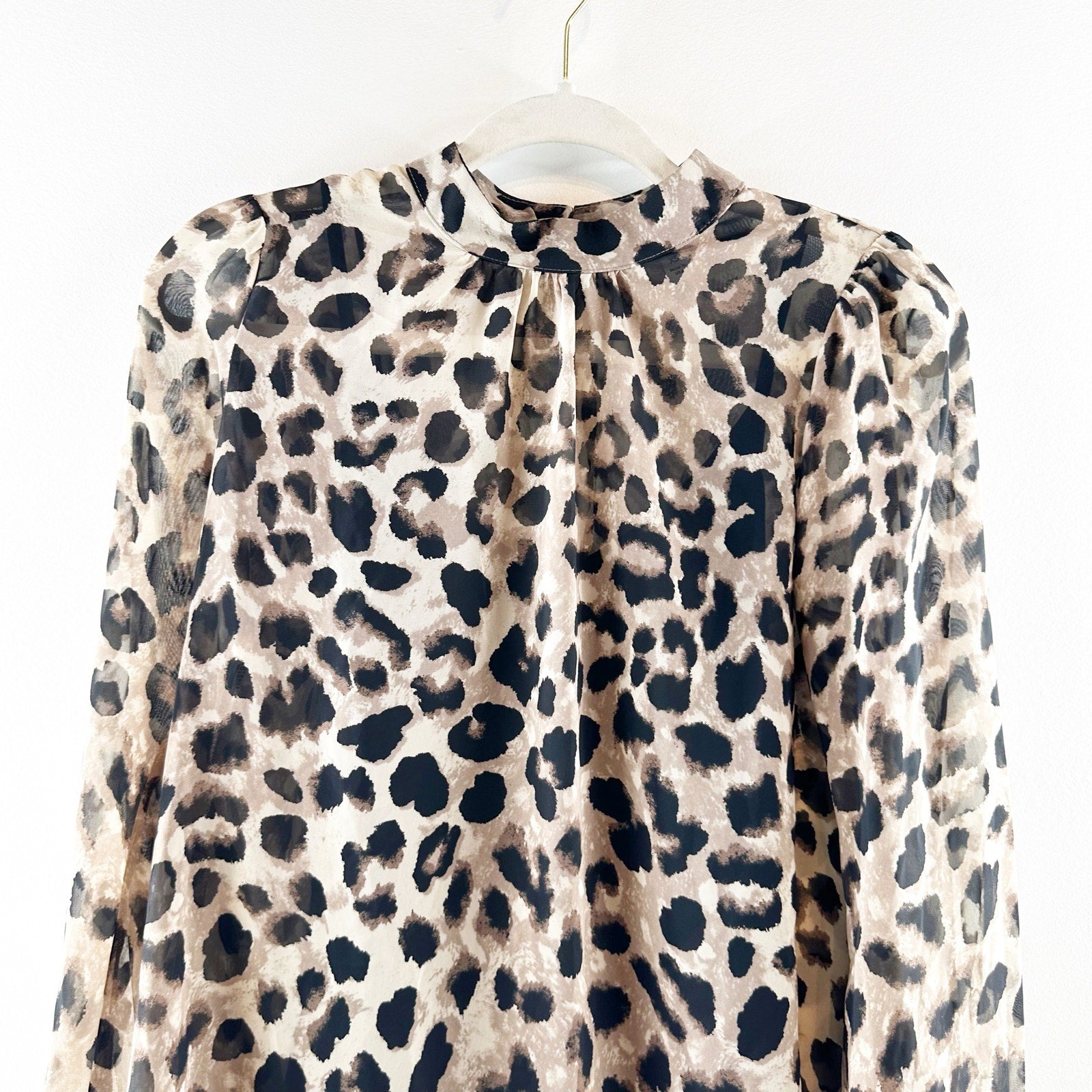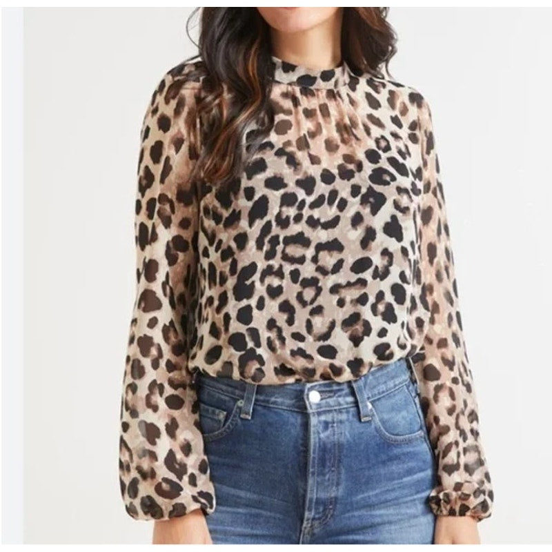 Allison Joy Nora Cheetah Print Long Sleeve Mock Neck Blouse Top Tan / Black XS