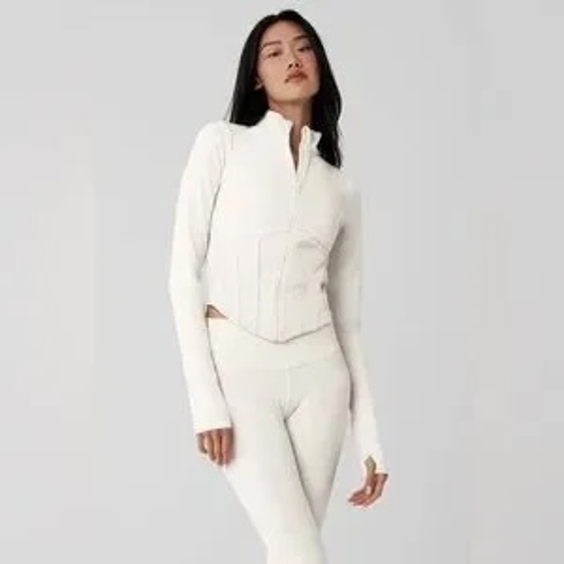 Alo Airbrush Corset Full Zip Long Sleeve Jacket White Small