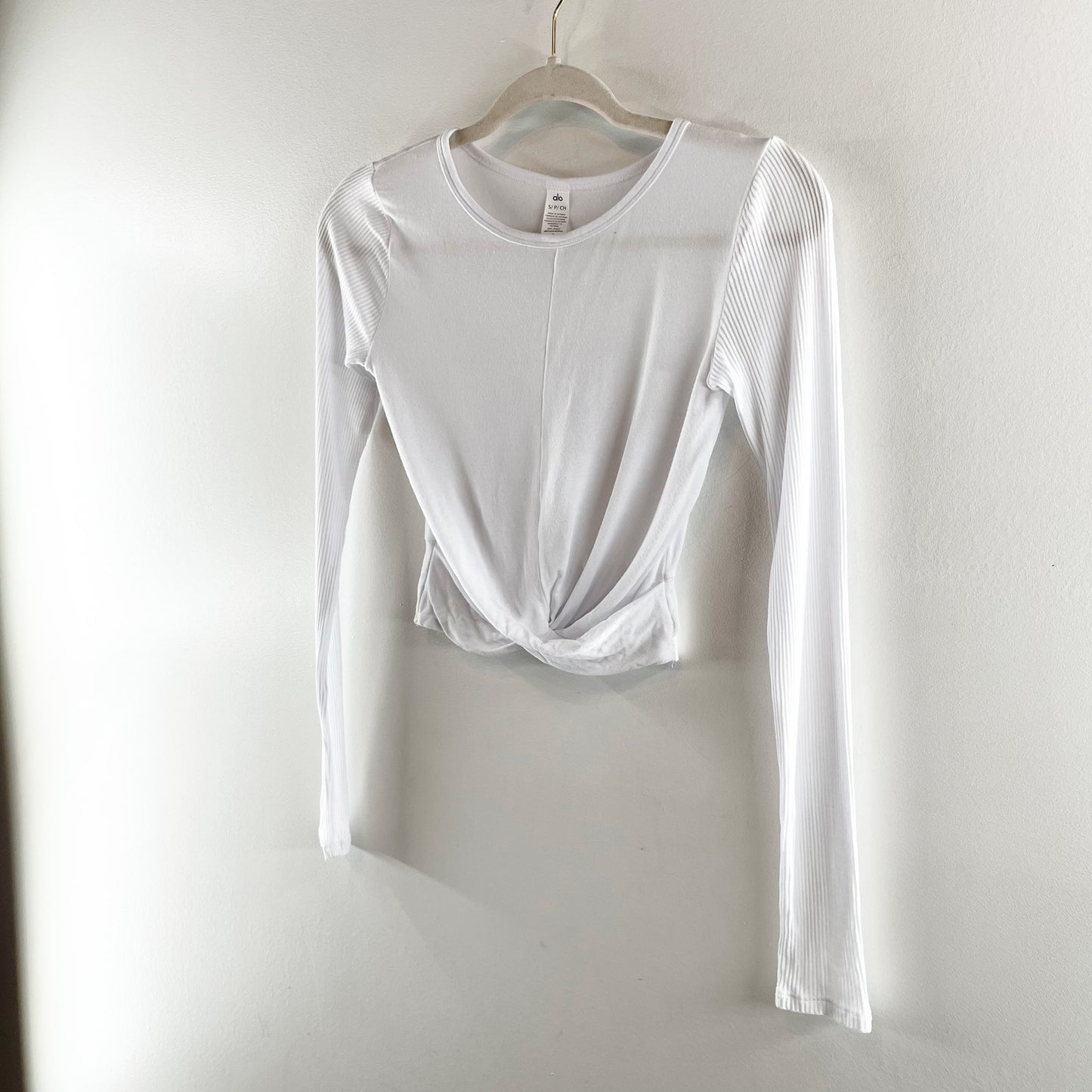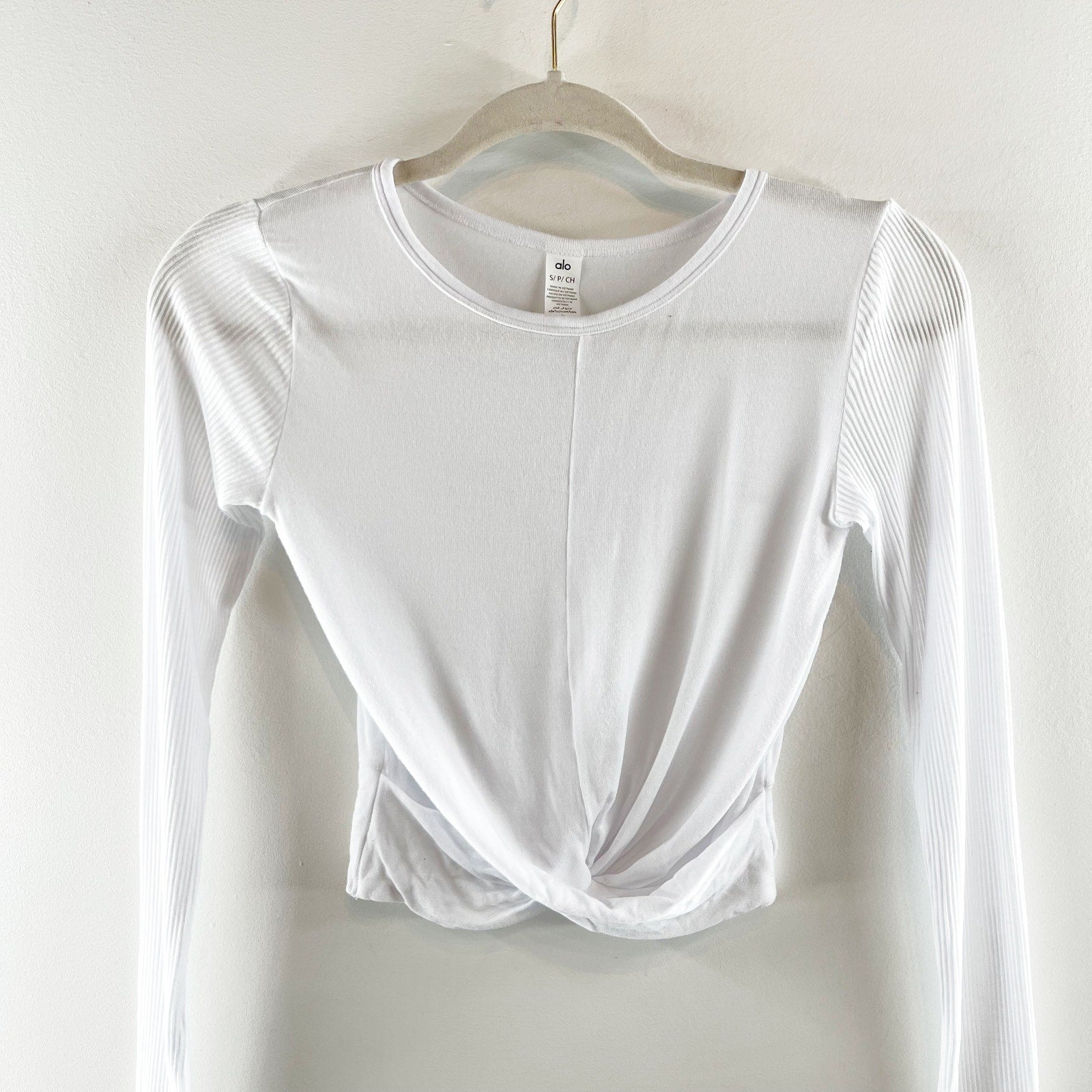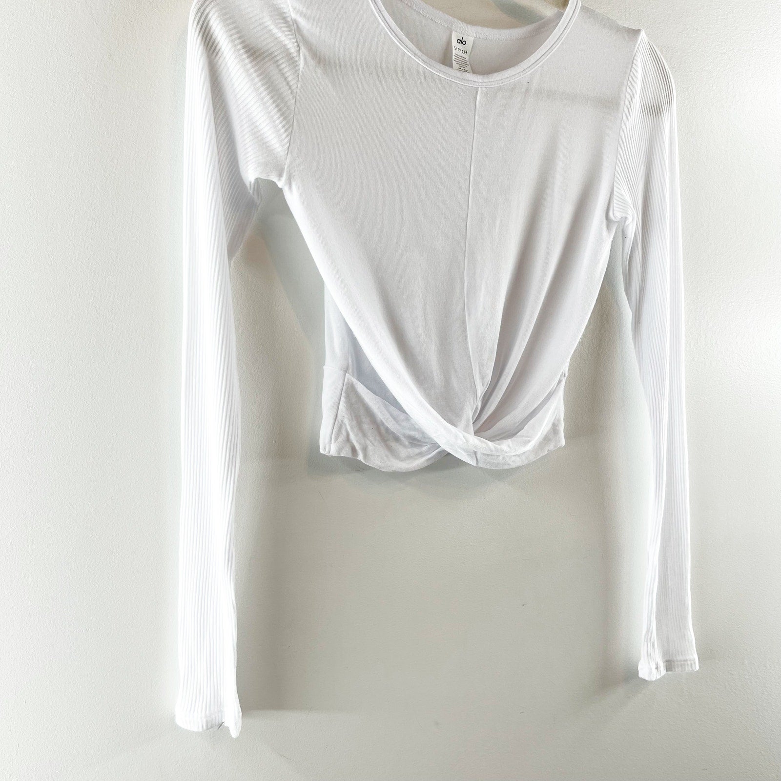 Alo Yoga Cover Long Sleeve Twist Front Top White Small