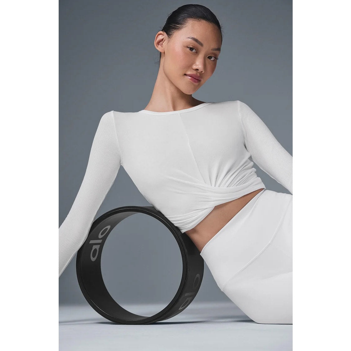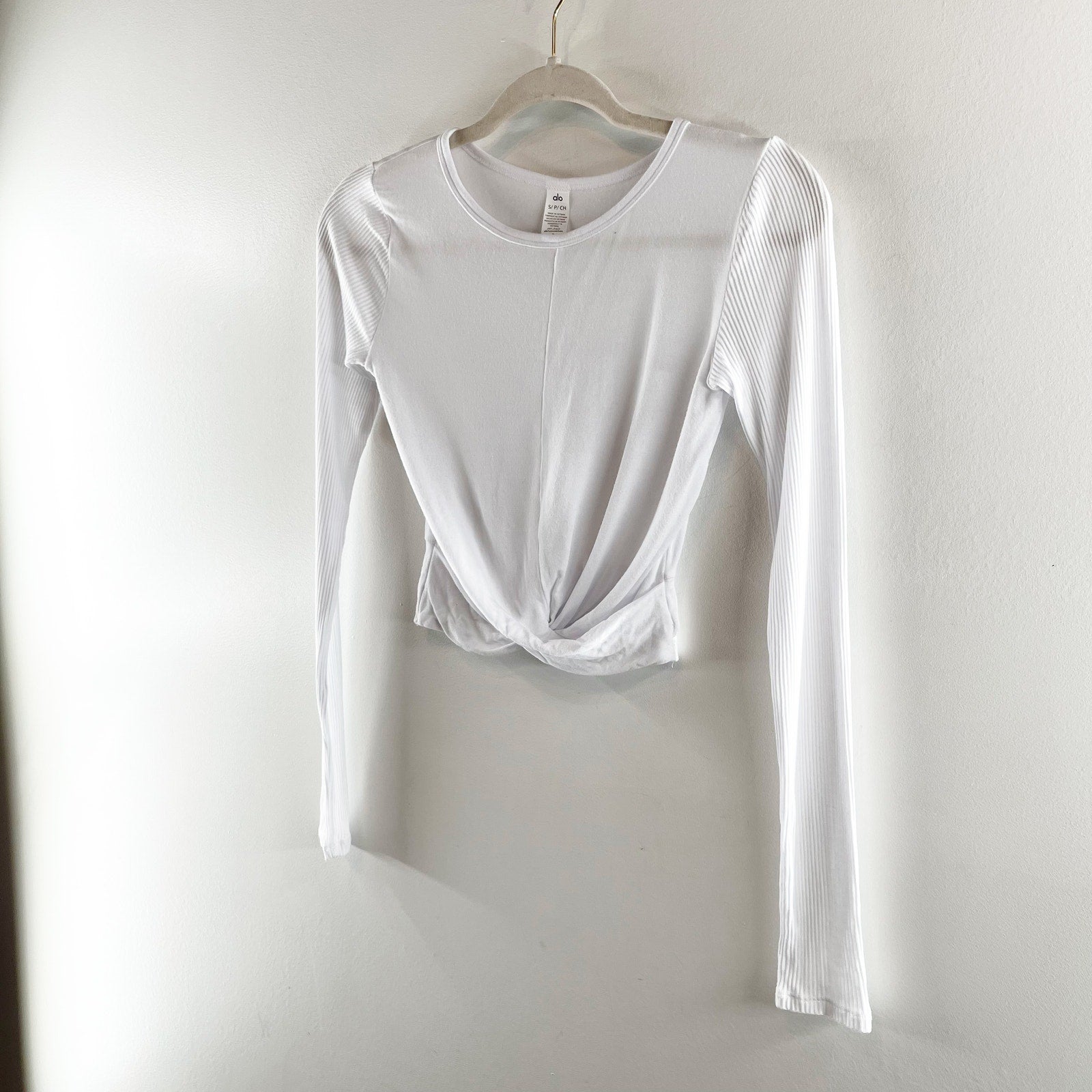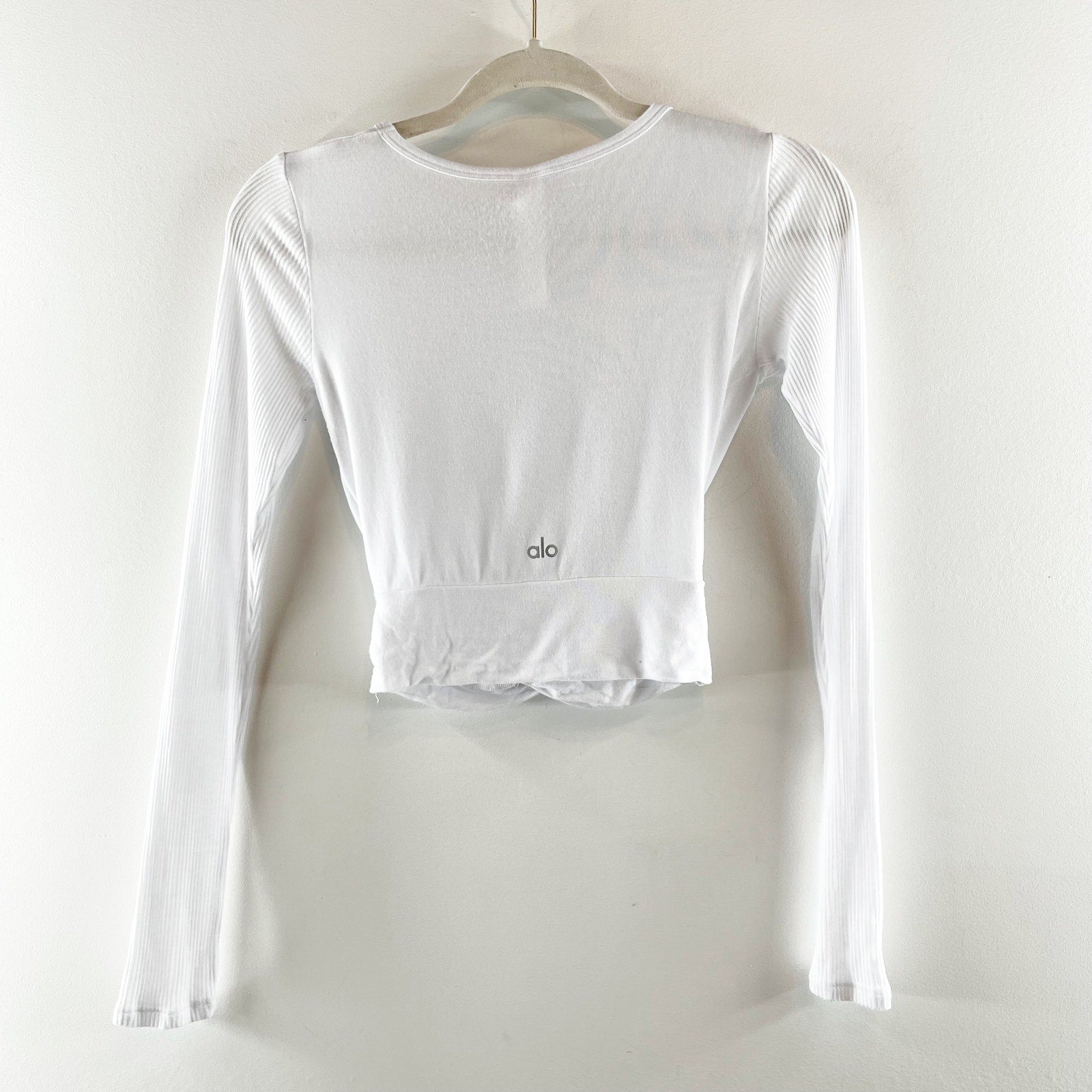 Alo Yoga Cover Long Sleeve Twist Front Top White Small