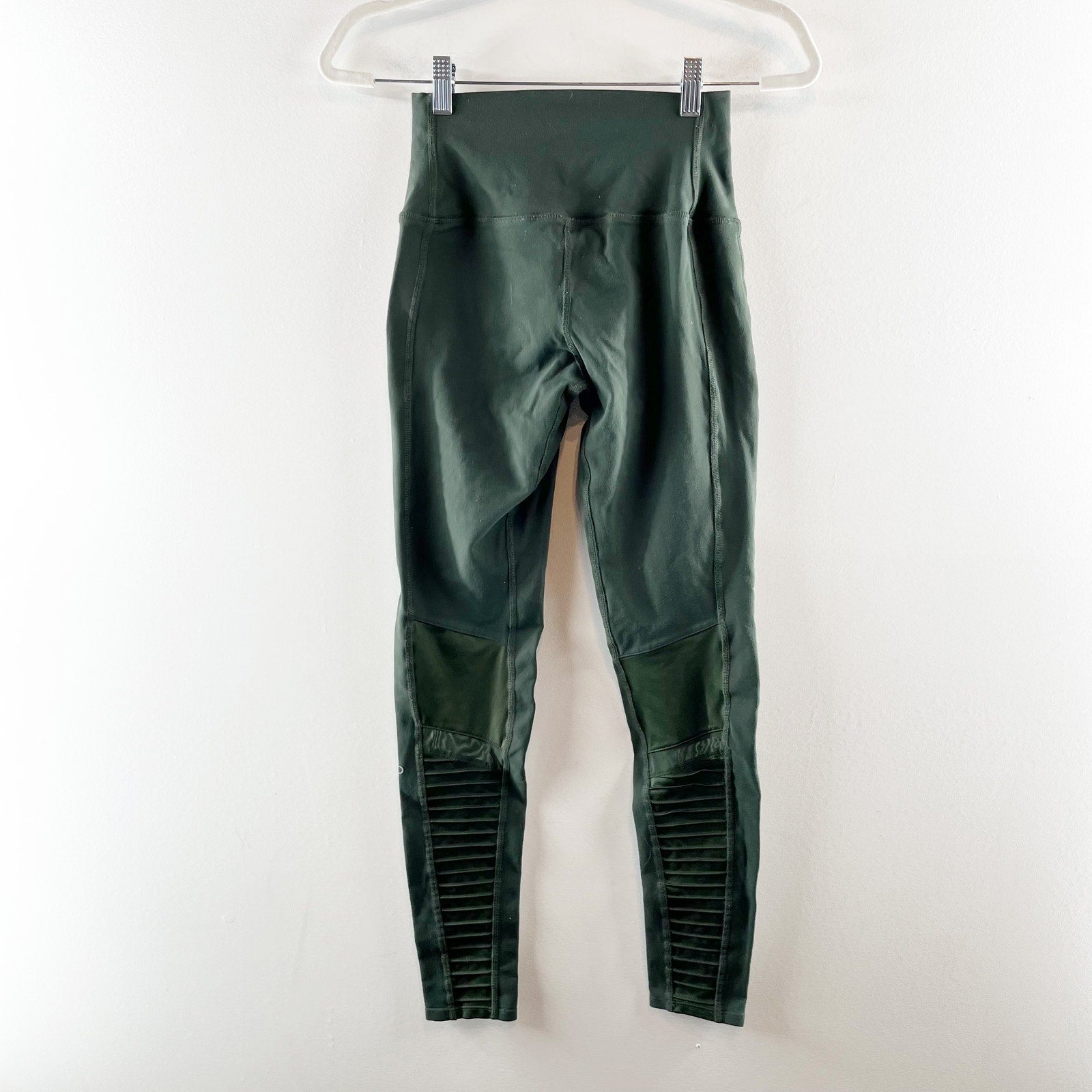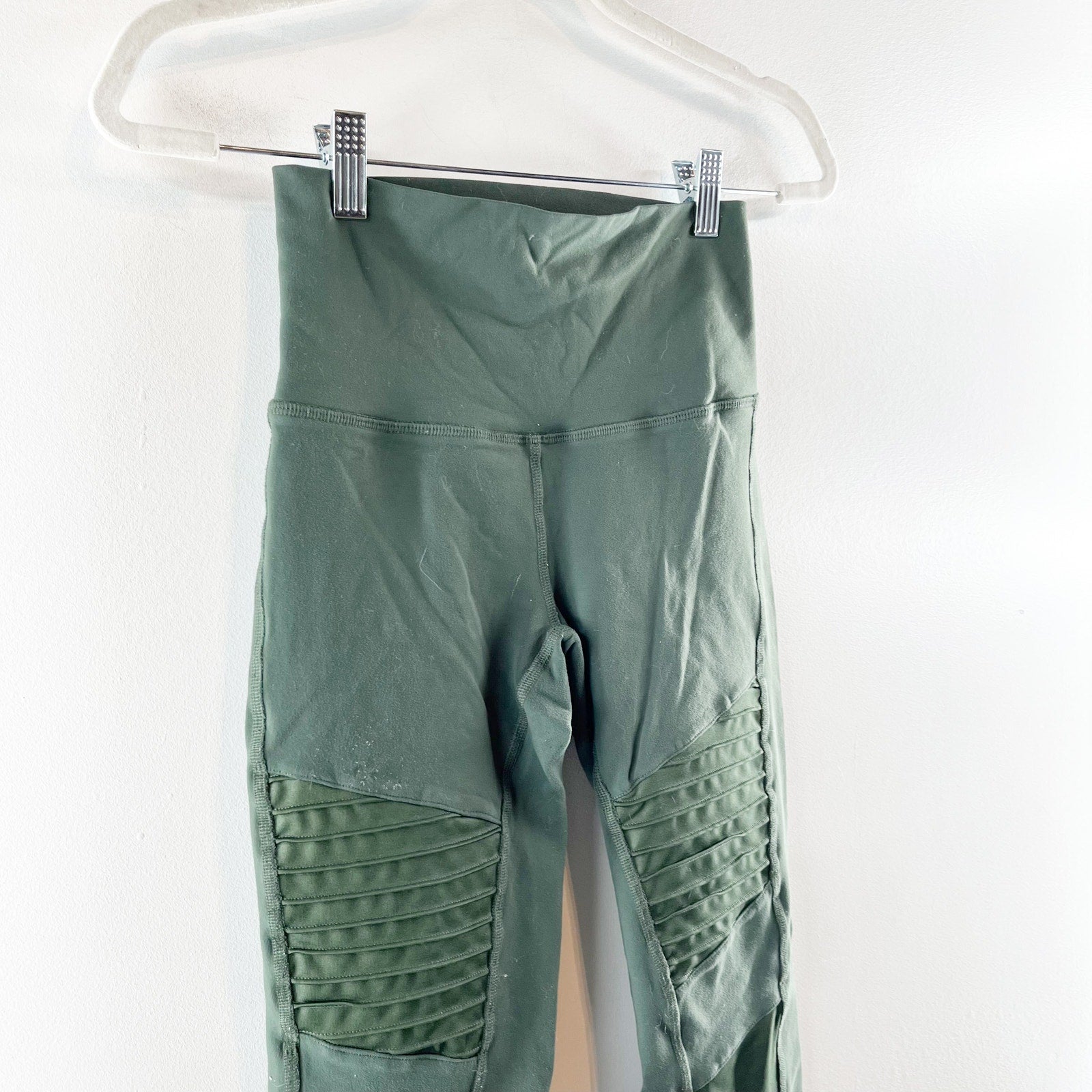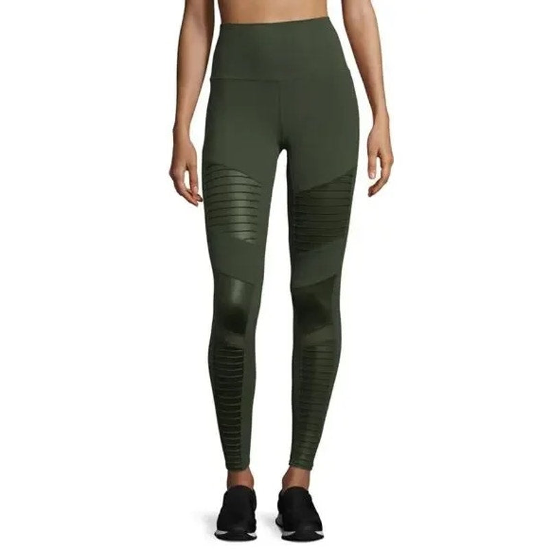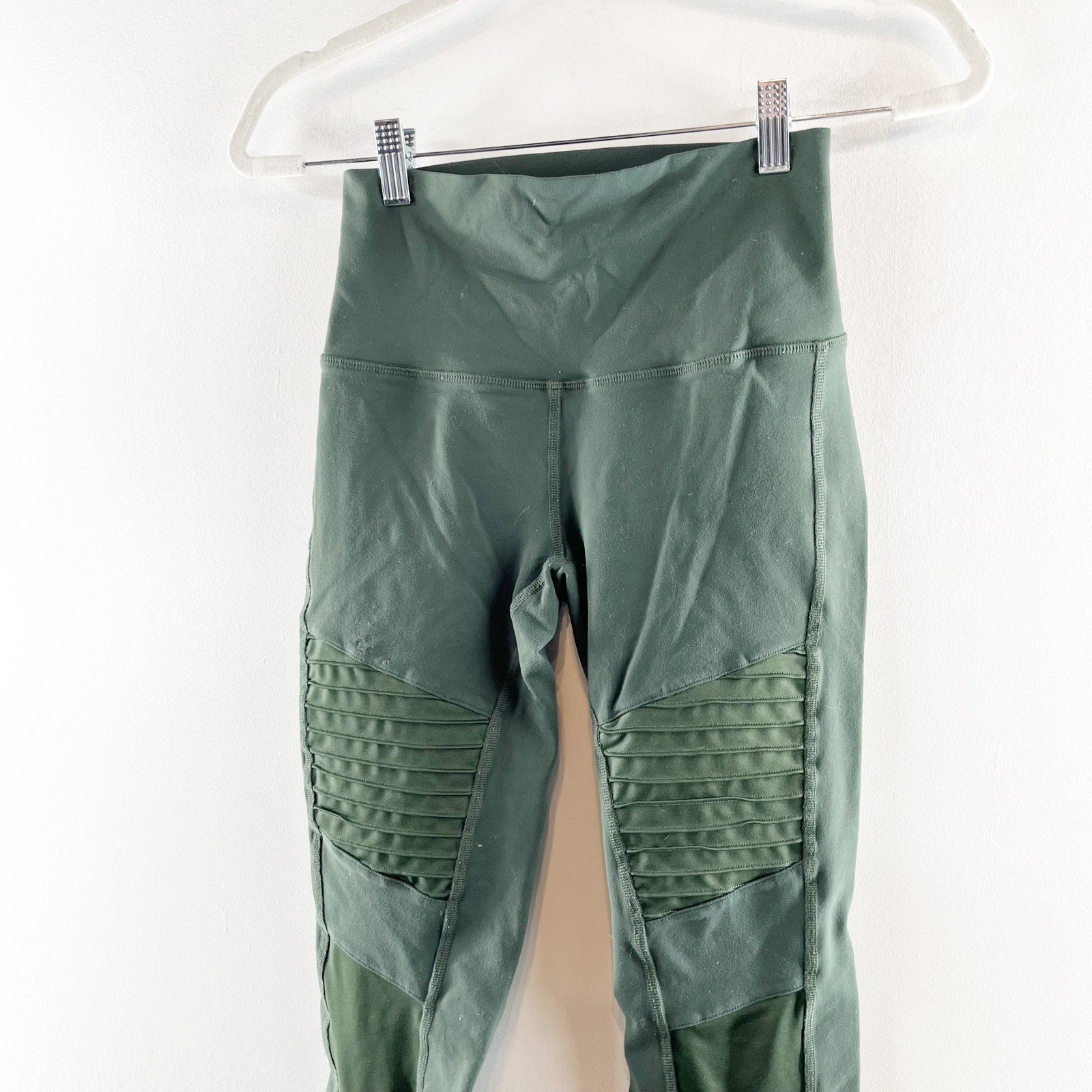 full length, biker, moto, ribbed, mesh, ankle, stretch, yoga, pants, leggings, green, workout, running, gym