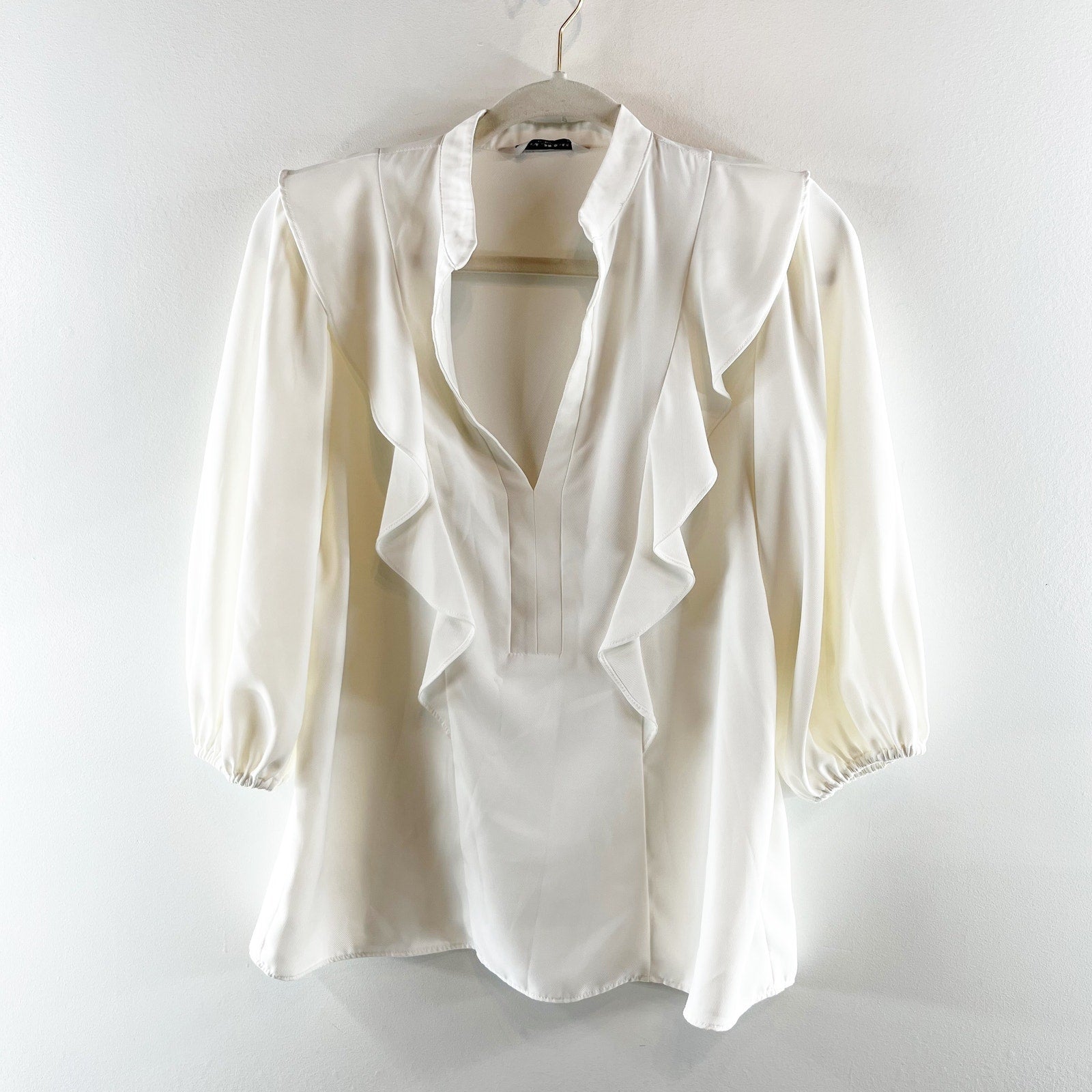 Amanda Uprichard 3/4 Sleeve Ruffle Trim Blouse Top White XS