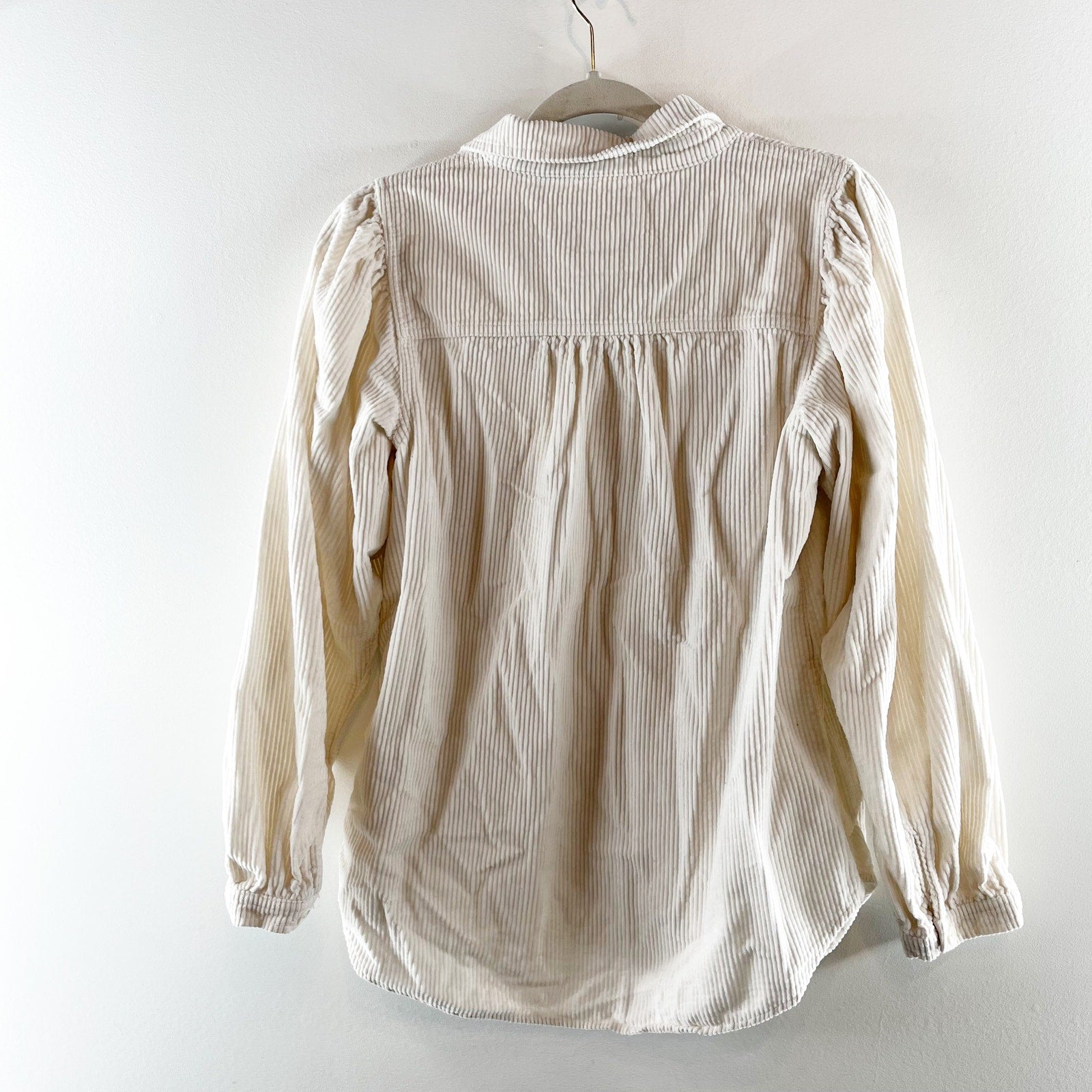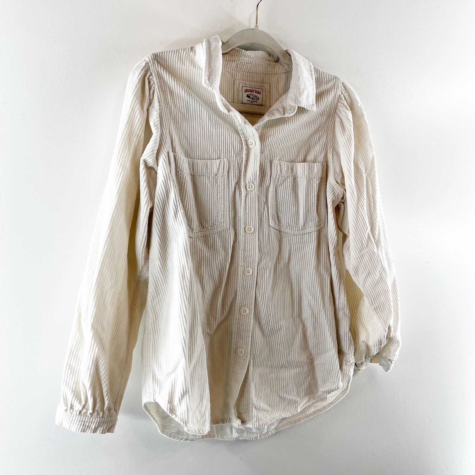 American Eagle Corduroy Button Up Long Sleeve Shirt Jacket Shacket Cream Small