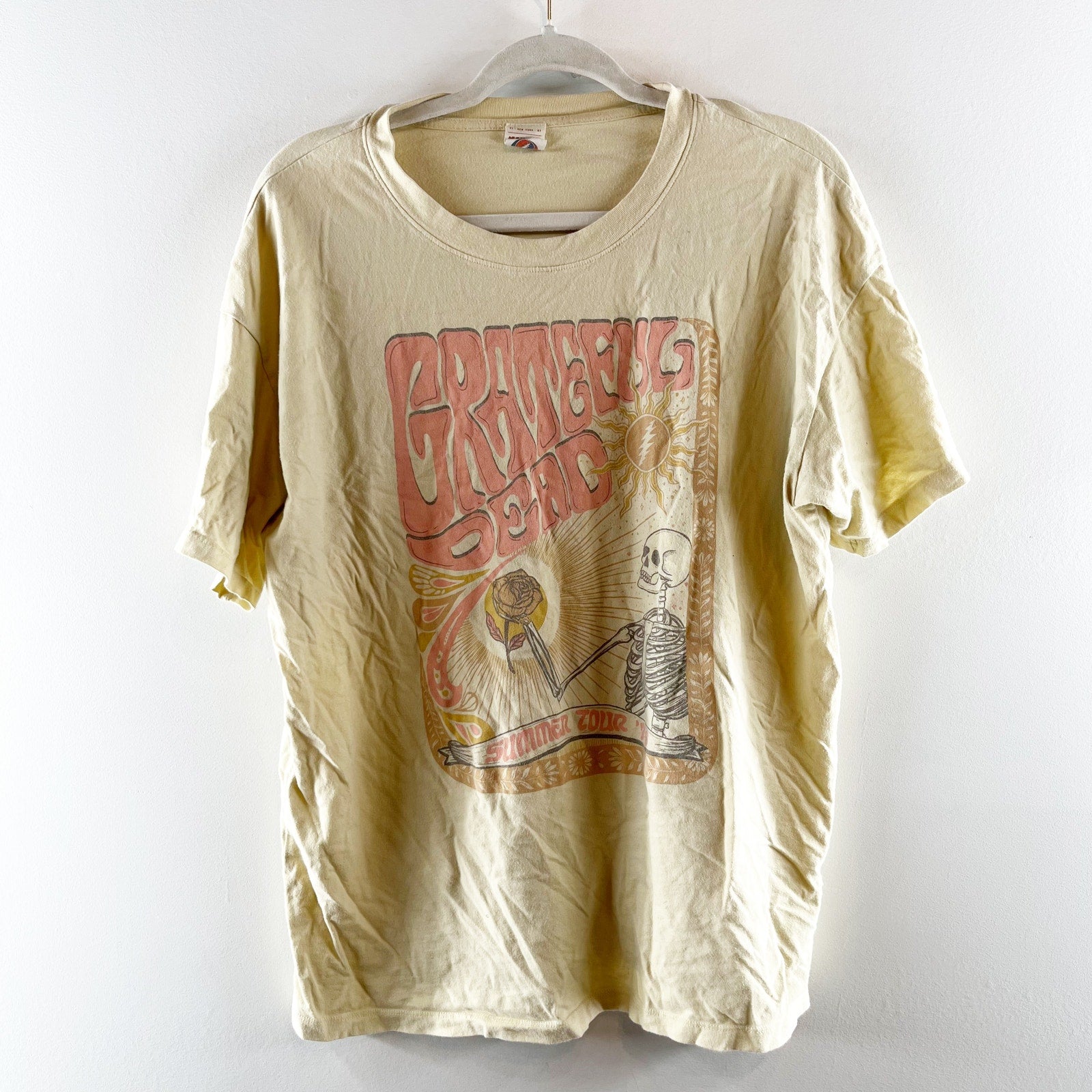 short sleeve, graphic, band tee, grateful dead, yellow, t-shirt, soft, oversized