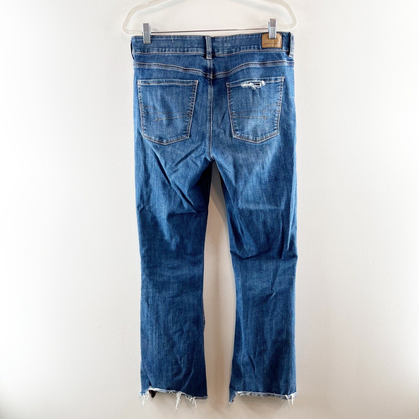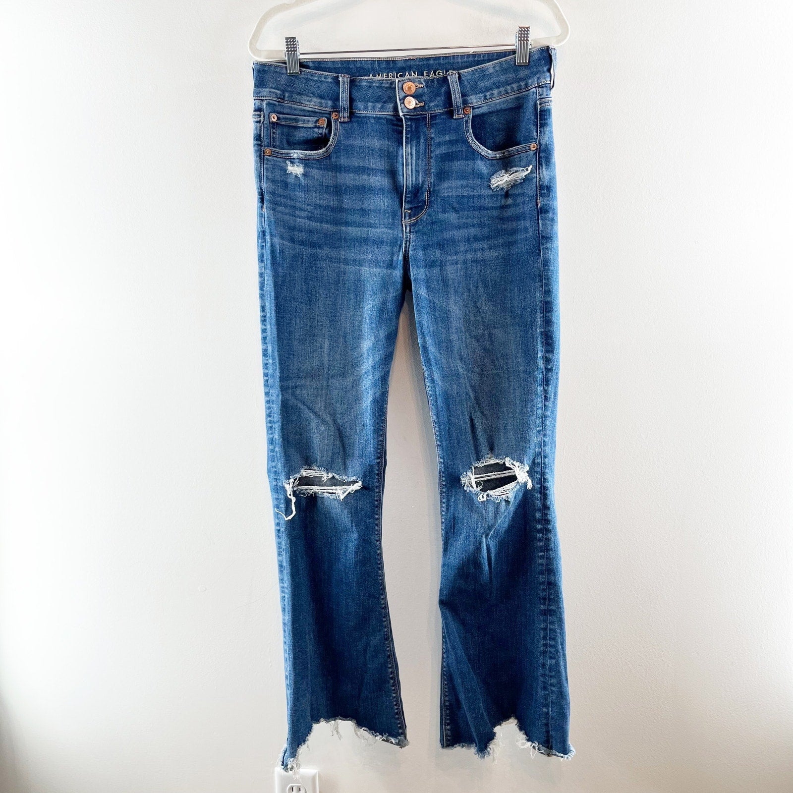 American Eagle High Rise Artist Flare Chewed Hem Jeans Blue 12