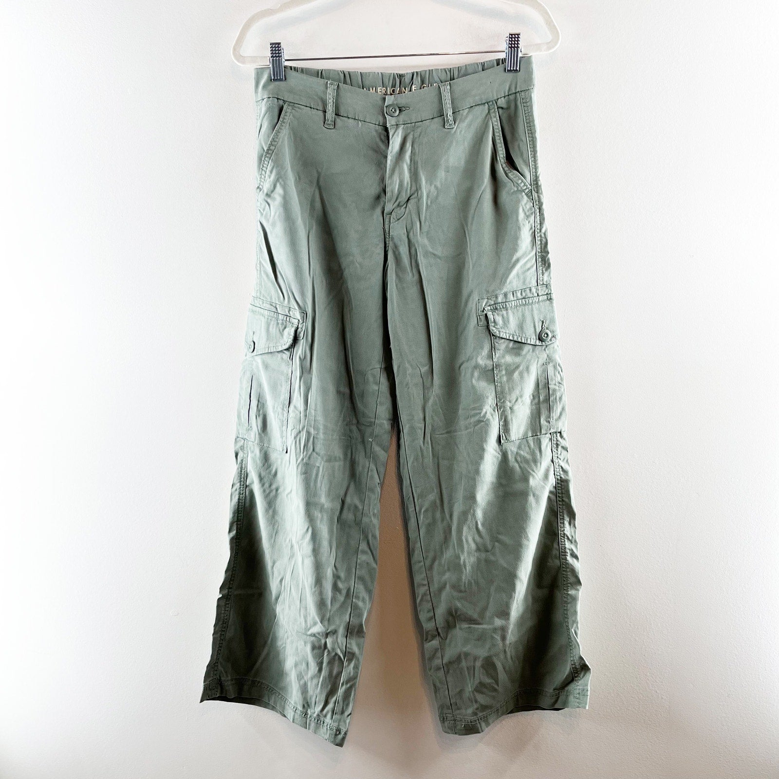 American Eagle Mid Rise Baggy Wide Leg Cargo Pants Green 4 Short