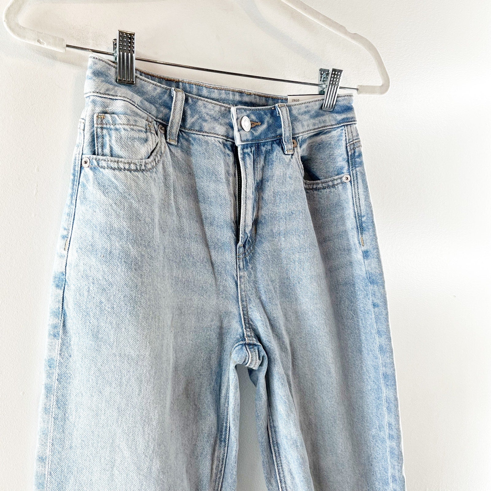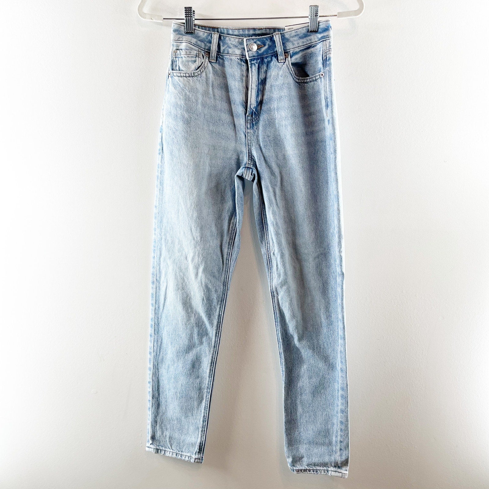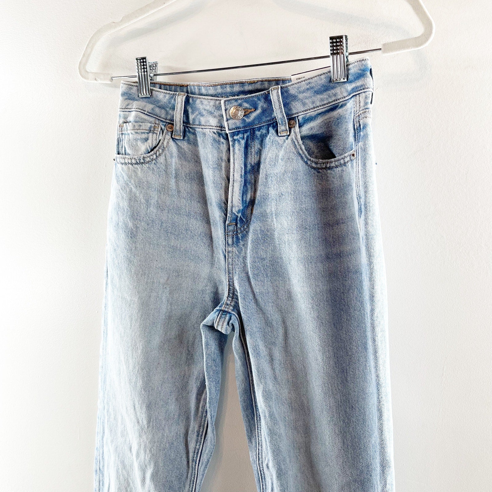 denim, mid-rise, belt loops, pockets, cotton blend, streetwear, mom jeans, casual, everyday wear, denimwear, light wash, high waisted