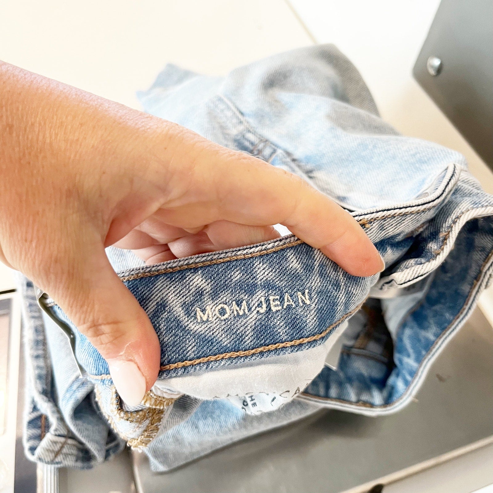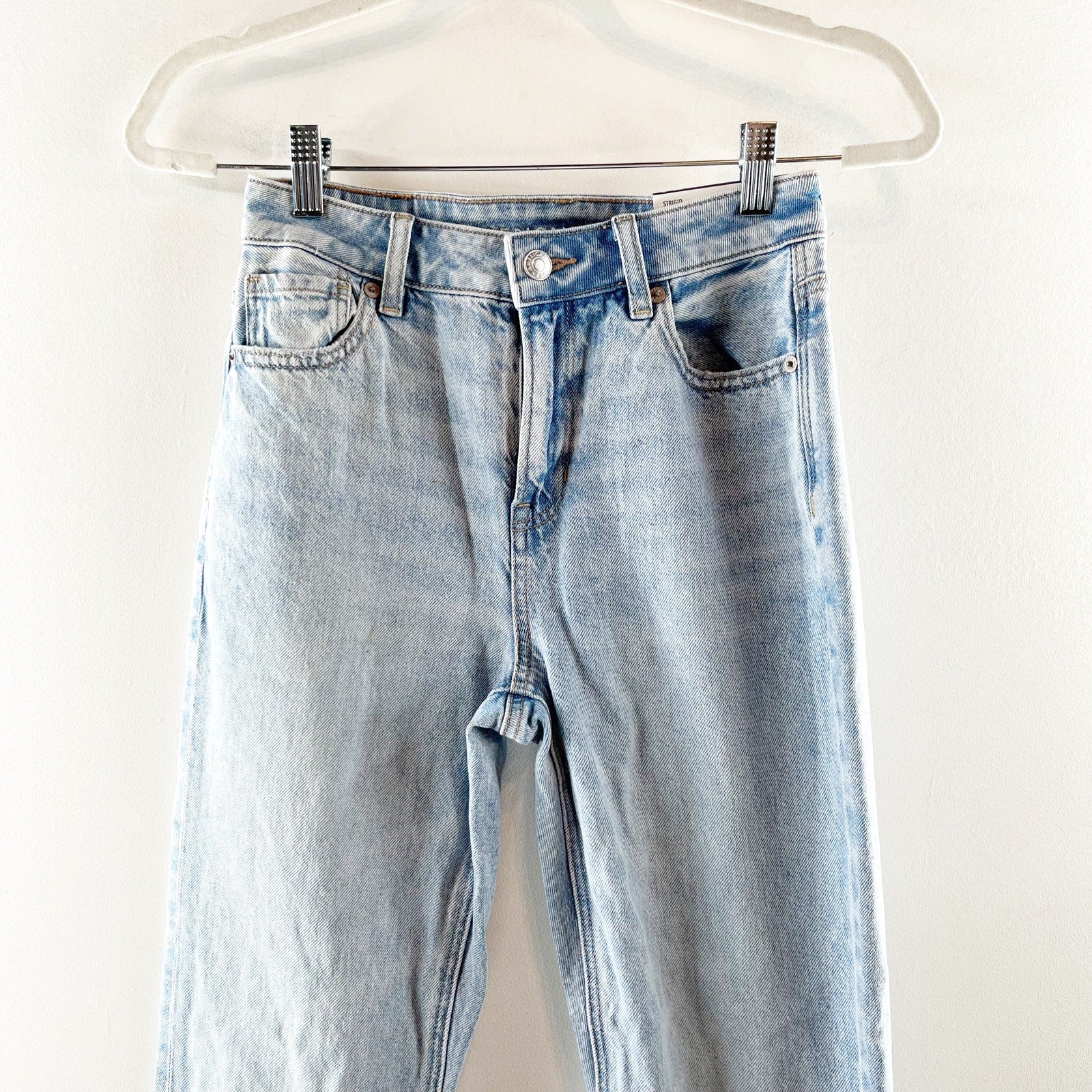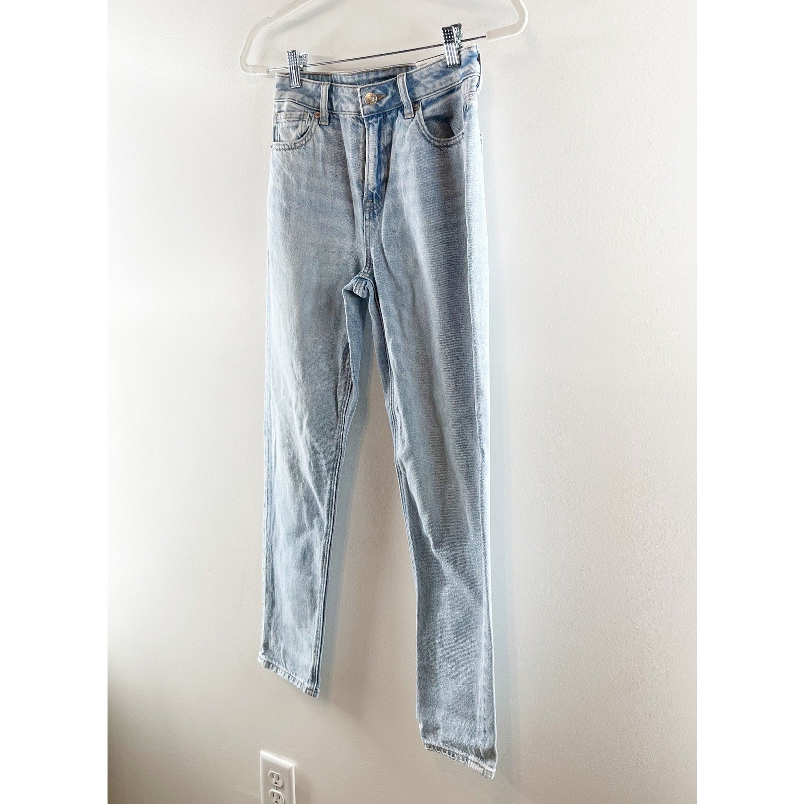 denim, mid-rise, belt loops, pockets, cotton blend, streetwear, mom jeans, casual, everyday wear, denimwear, light wash, high waisted
