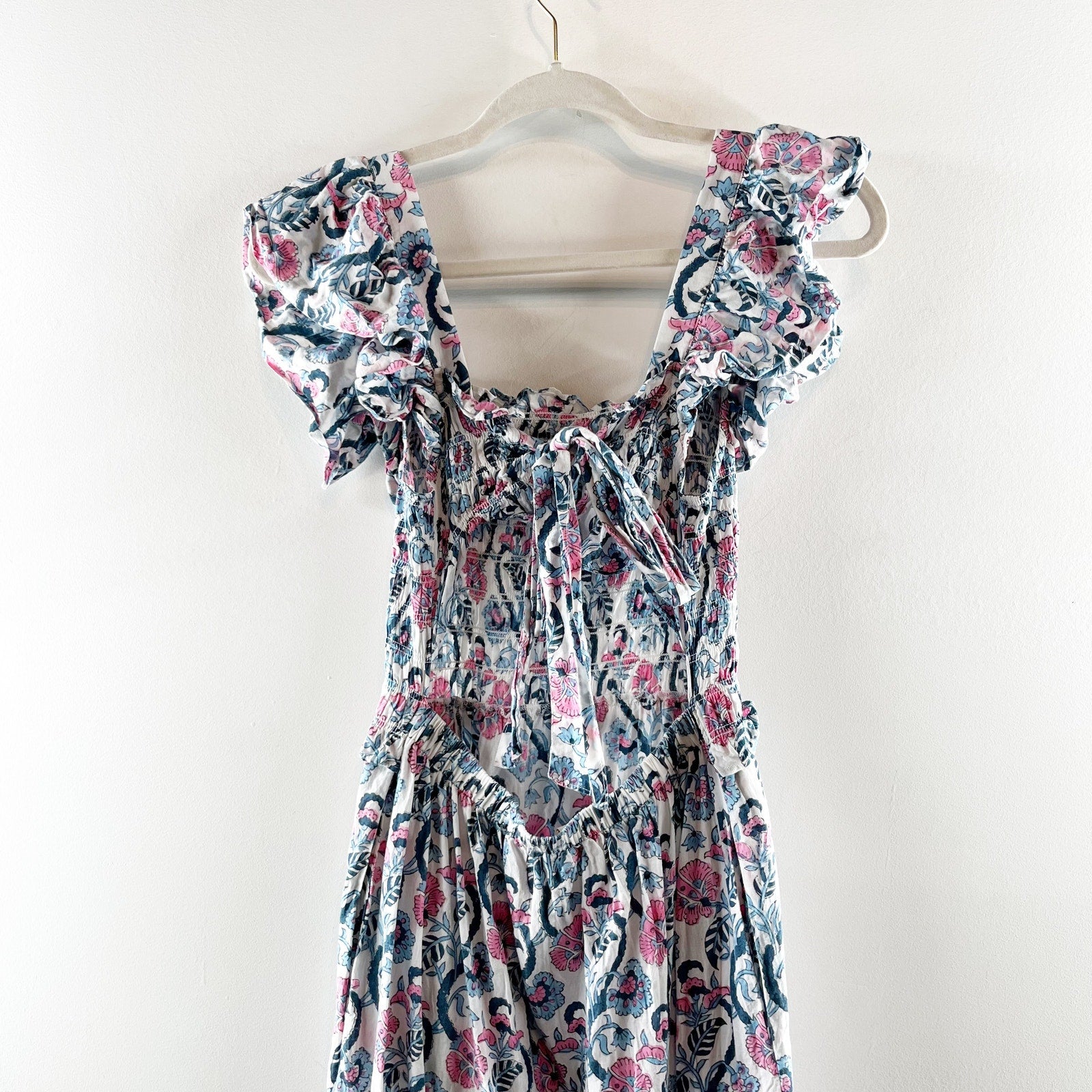 Anna Cate Collection Gisele Floral Flutter Sleeve Maxi Sundress Blue Pink XS