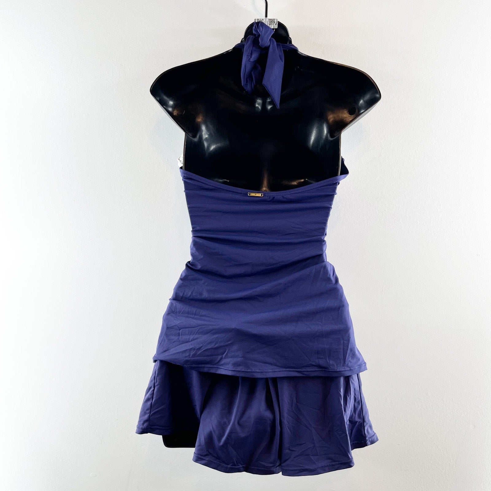 Anne Cole Two Piece Twist Front Halter Tankini Skirt Bikini Set Blue M / L