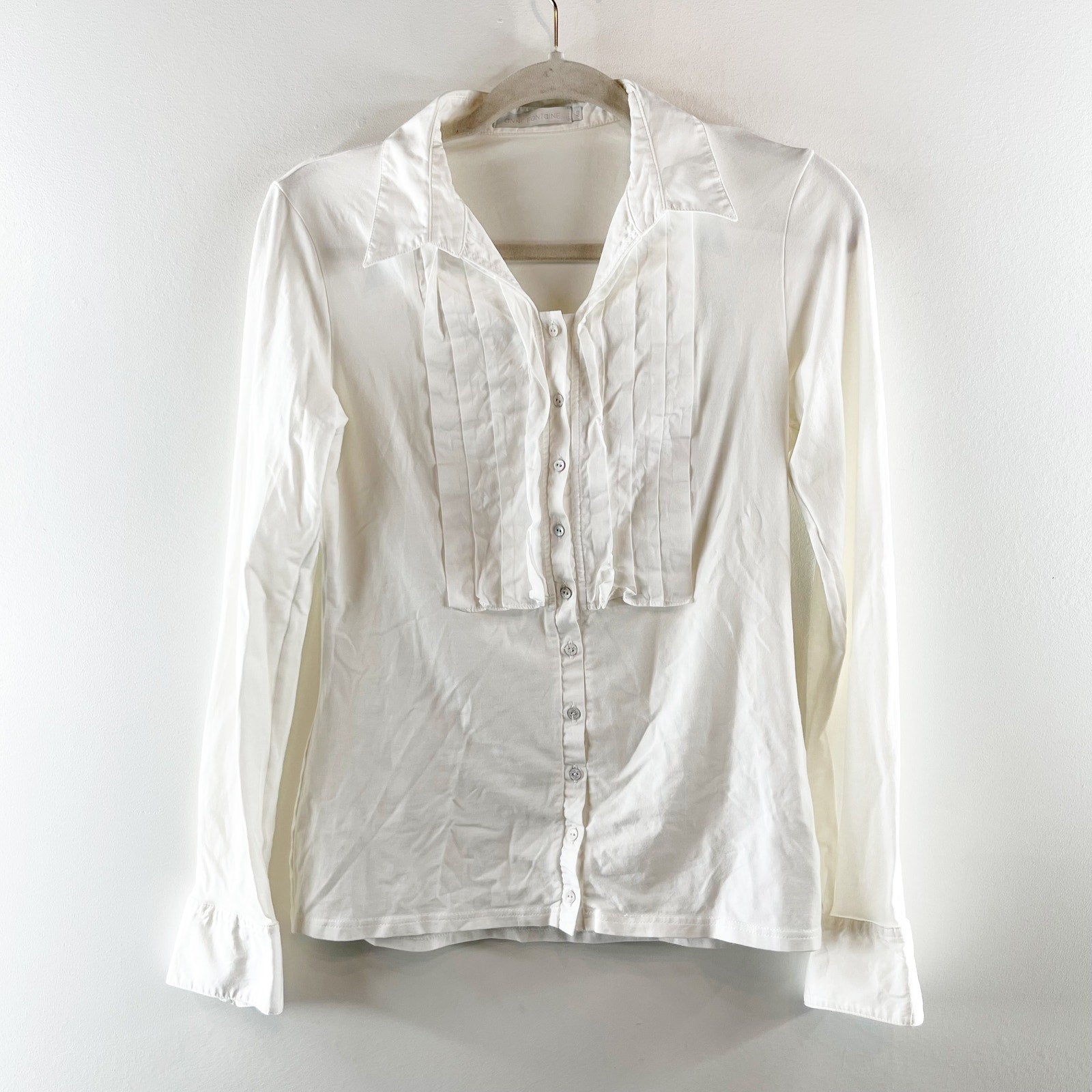 Anne Fontaine Meredith Long Sleeve Pleated Button-Up Shirt White 40 / 6