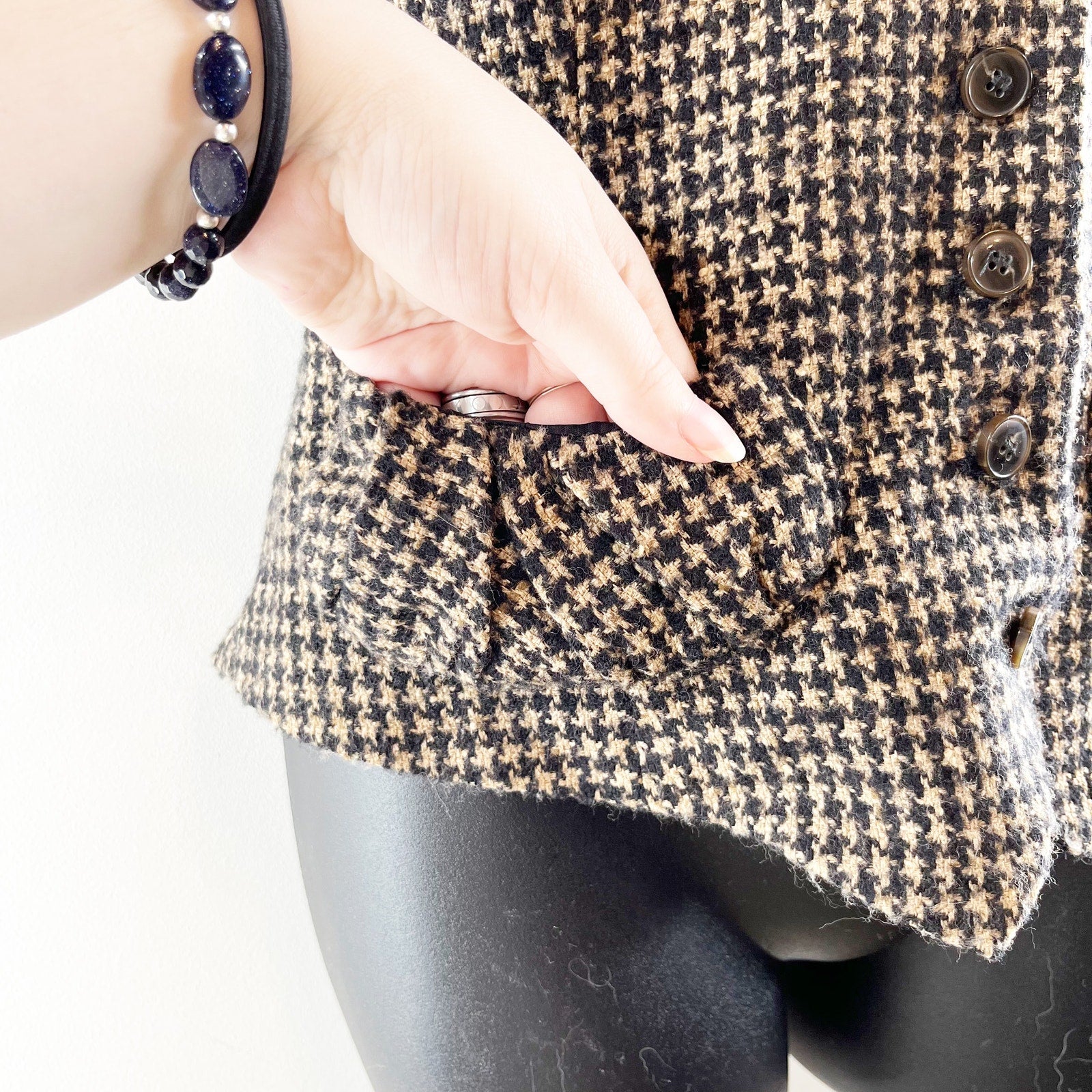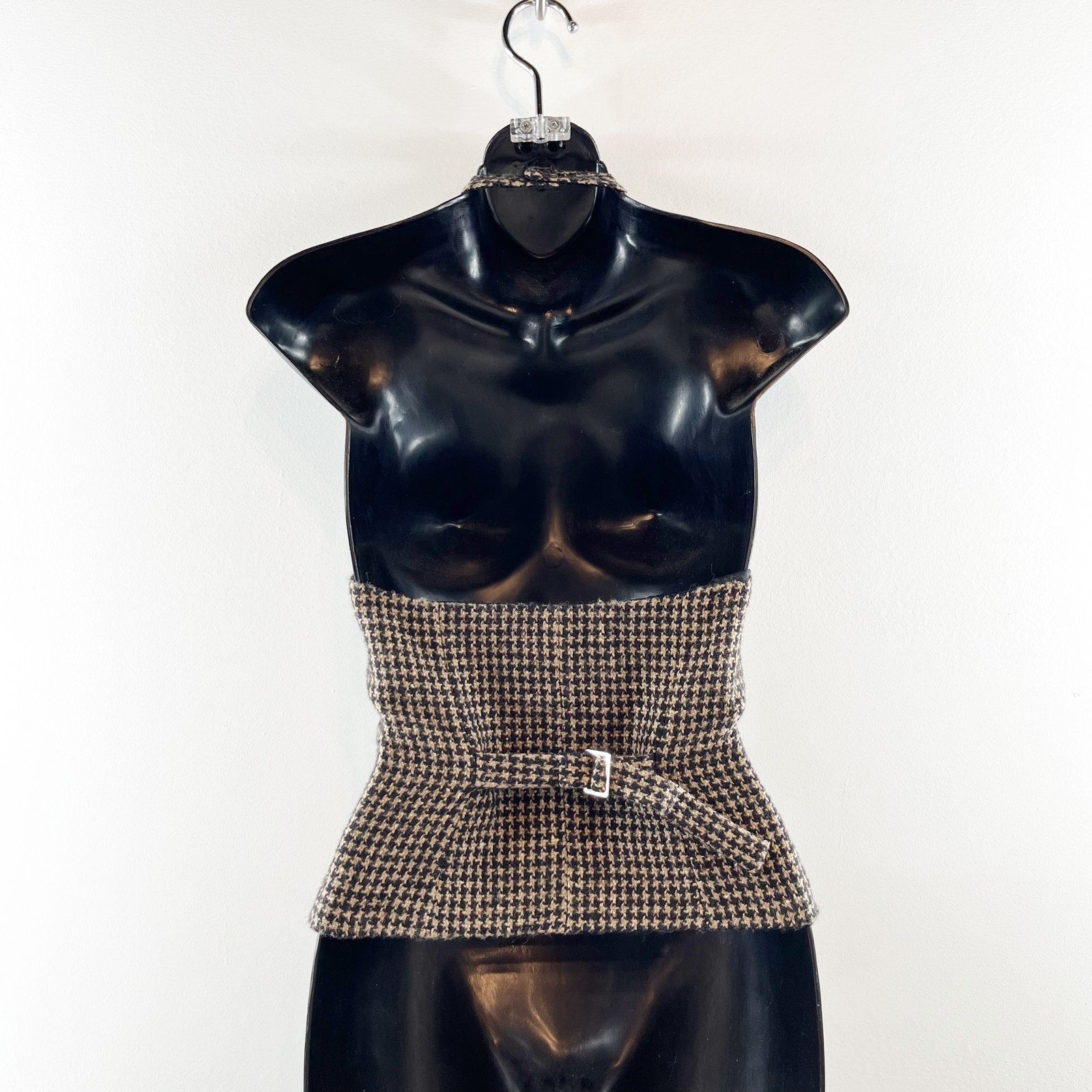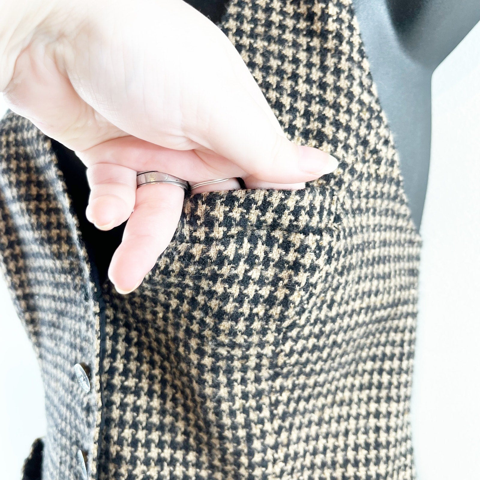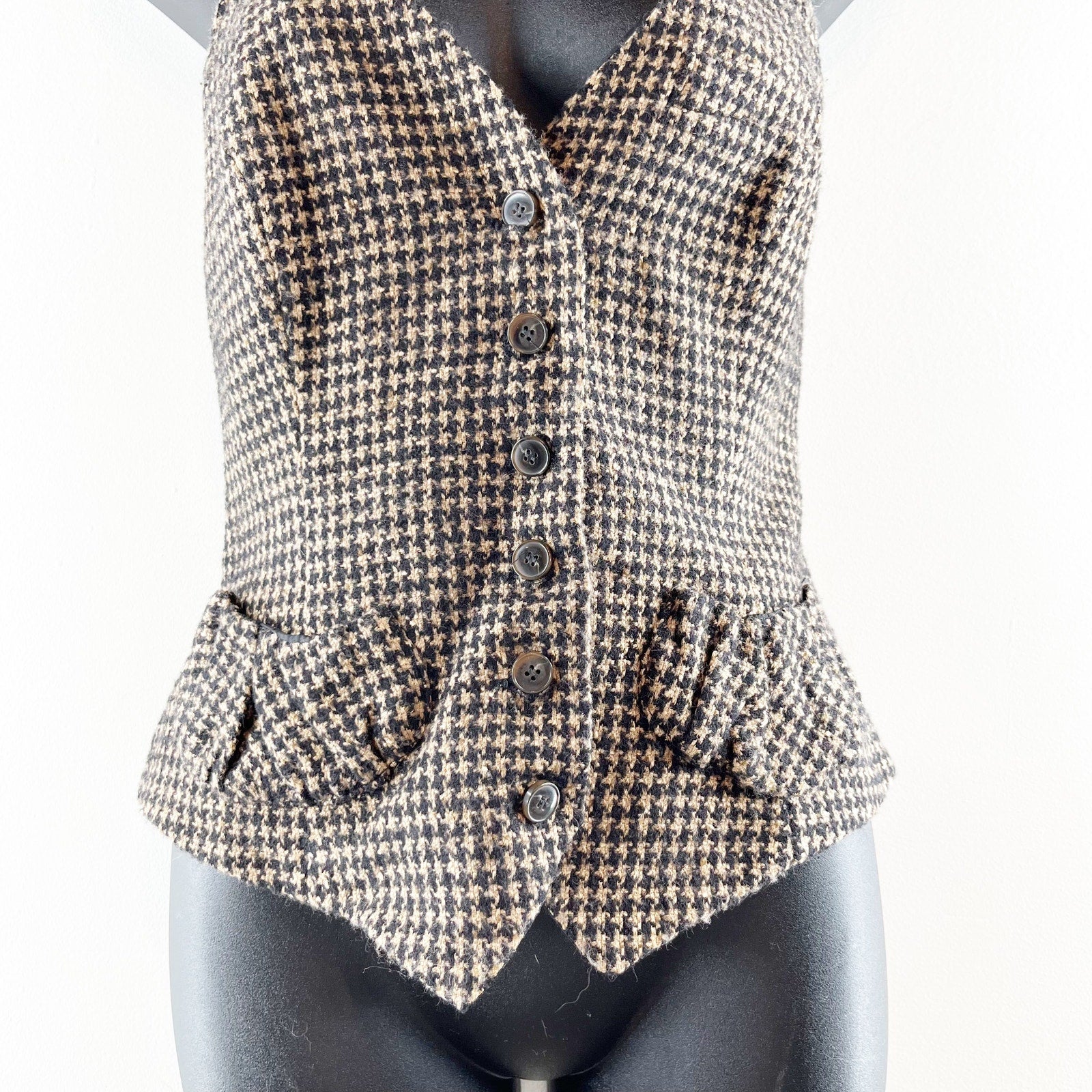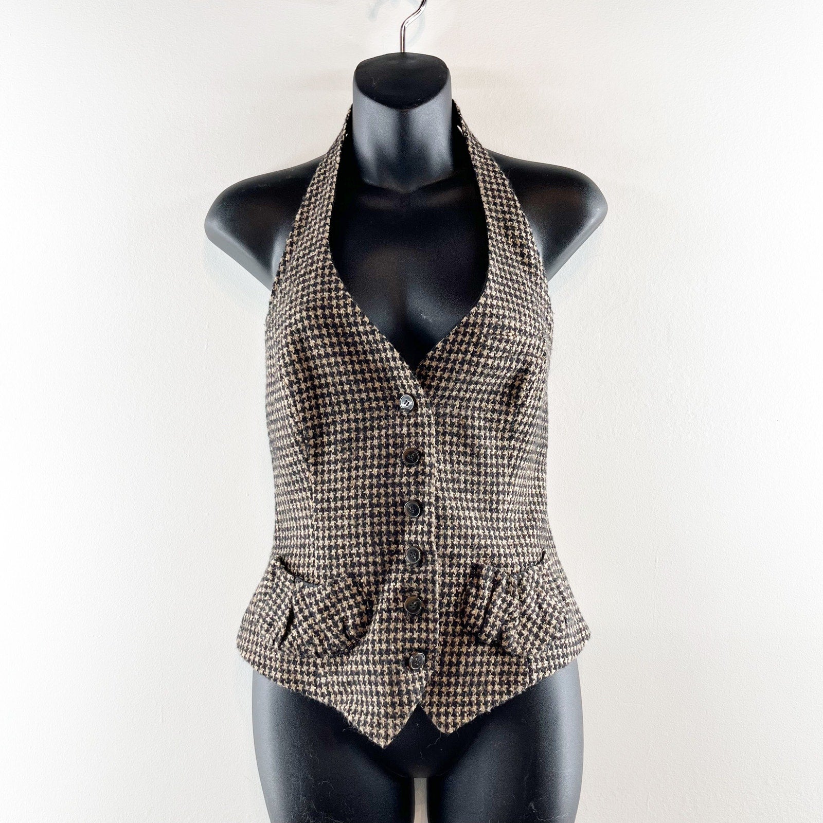 Anne Fontaine Paris Houndstooth Sleeveless Halter Waistcoat Vest Tan Black 40