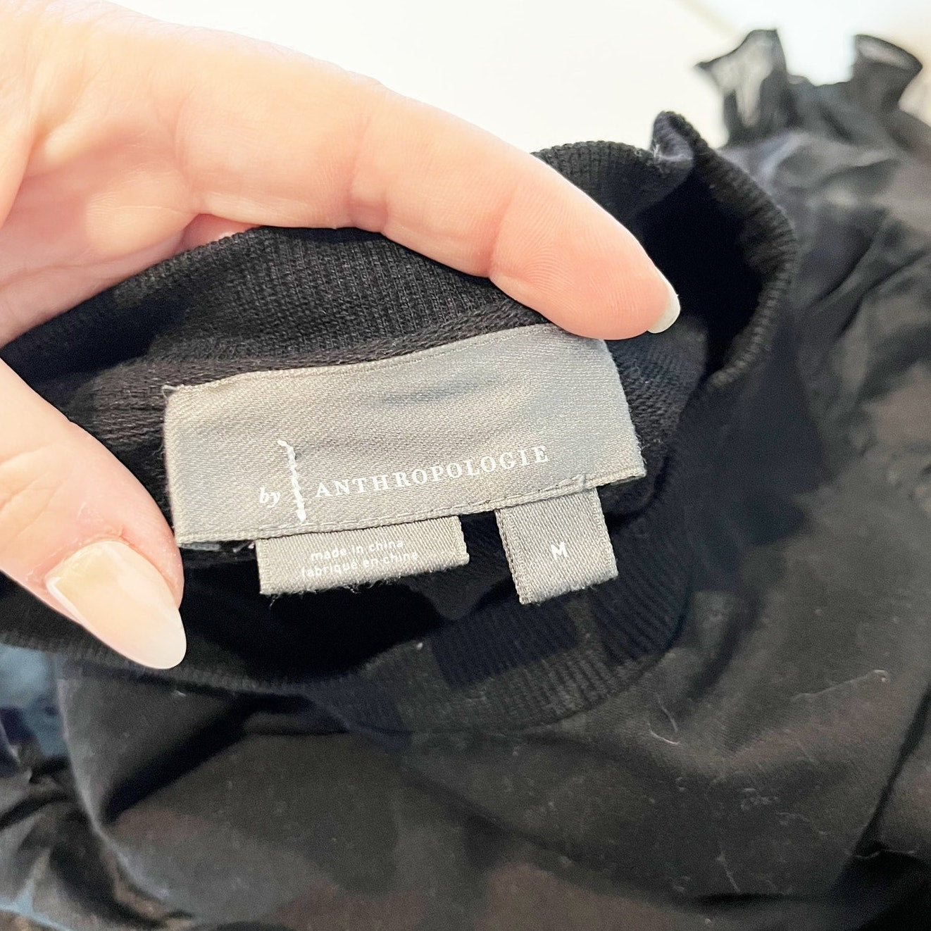 Anthropologie Crewneck Organza Puff Long Sleeve Blouse Top Black Medium