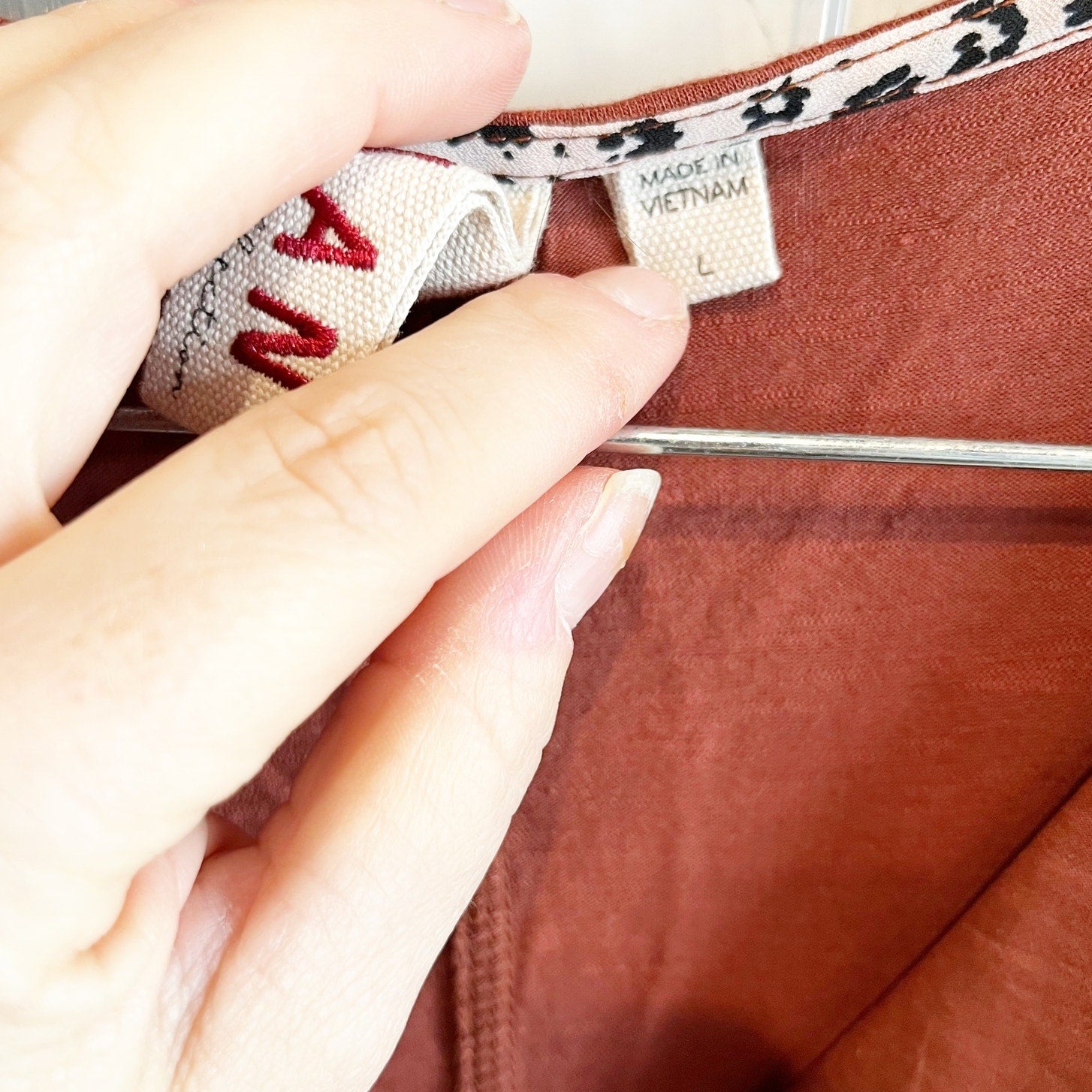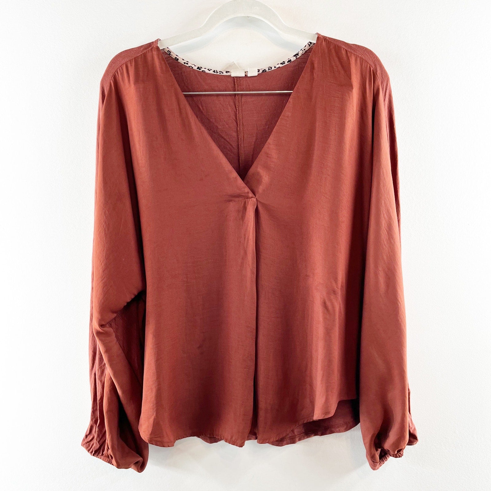 Anthropologie Dolan V Neck Long Sleeve Blouse Top Terracotta Rust Red Large