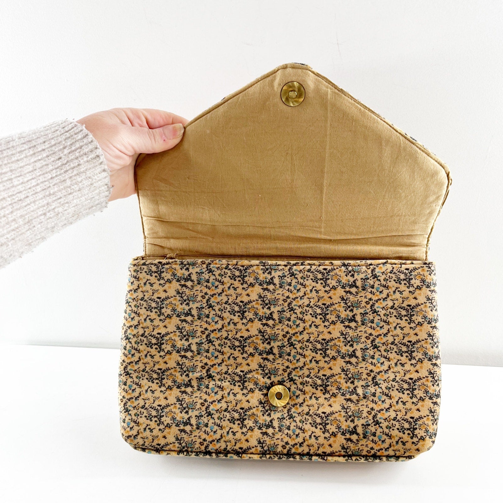 velvet, velour, gold, floral, clutch, crossbody, pearl chain strap, rectangle, snap closure, cottagecore