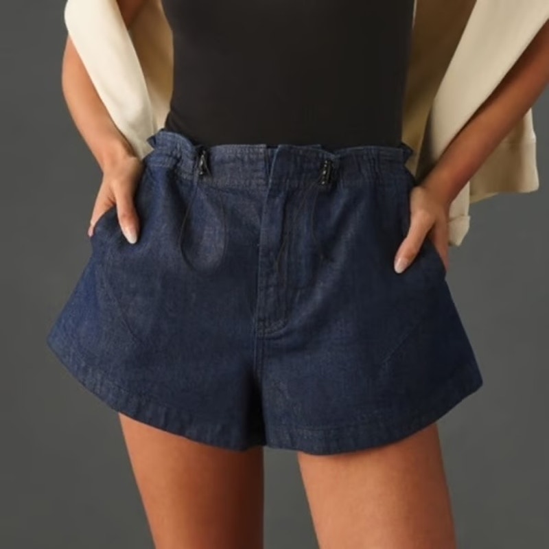 Anthropologie Pilcro Mid-Rise Denim Parachute Shorts Blue Large