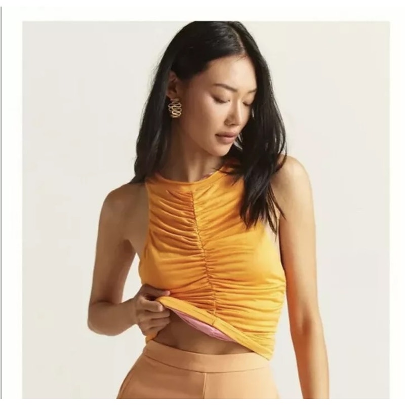 Anthropologie Pilcro Ruched Gathered Reversible Tank Top Pink Orange XS