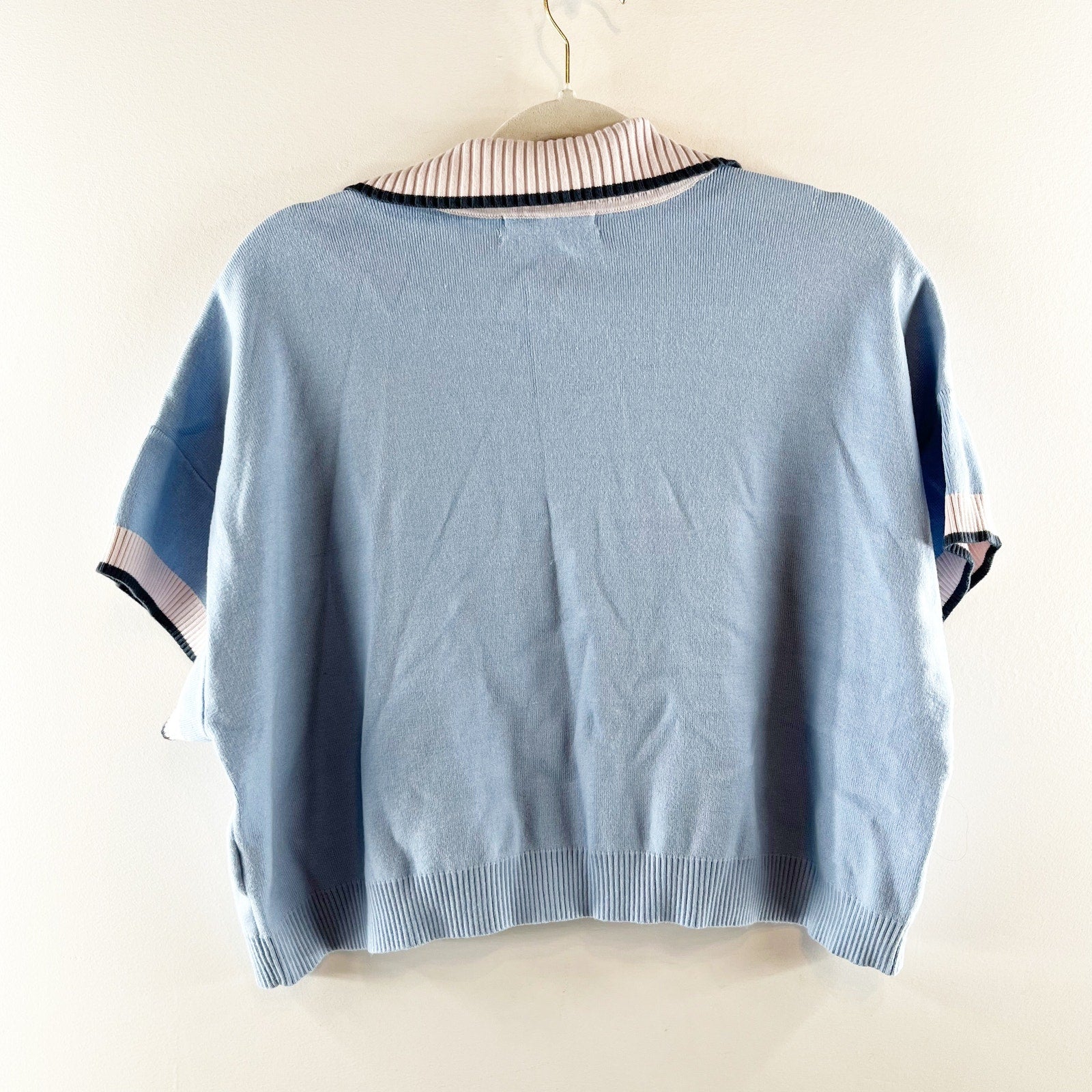 Anthropologie Short Sleeve Polo Collared Sweater Blue Large