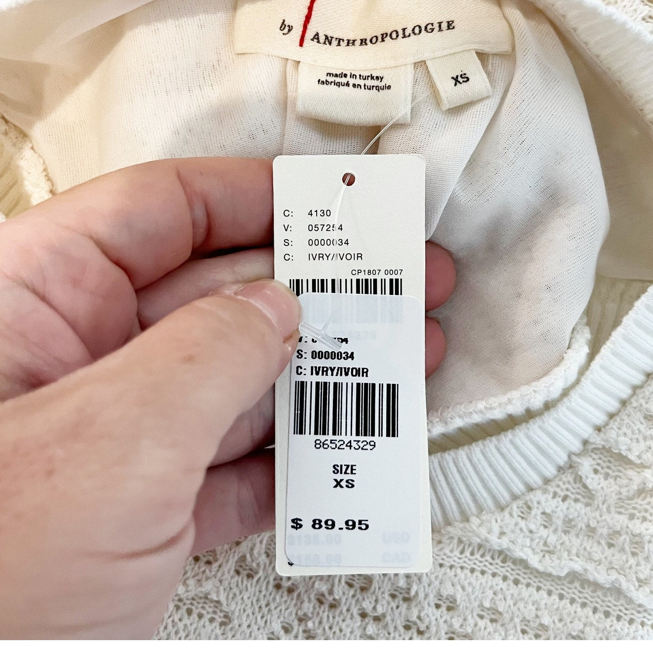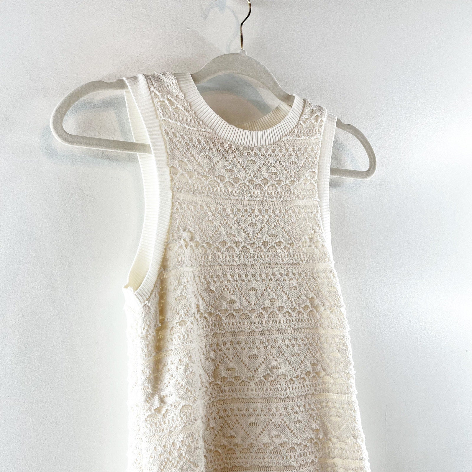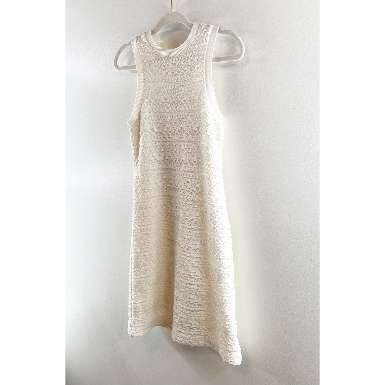 Anthropologie Textured Knit Crochet High Neck Sleeveless Mini Shift Dress XS