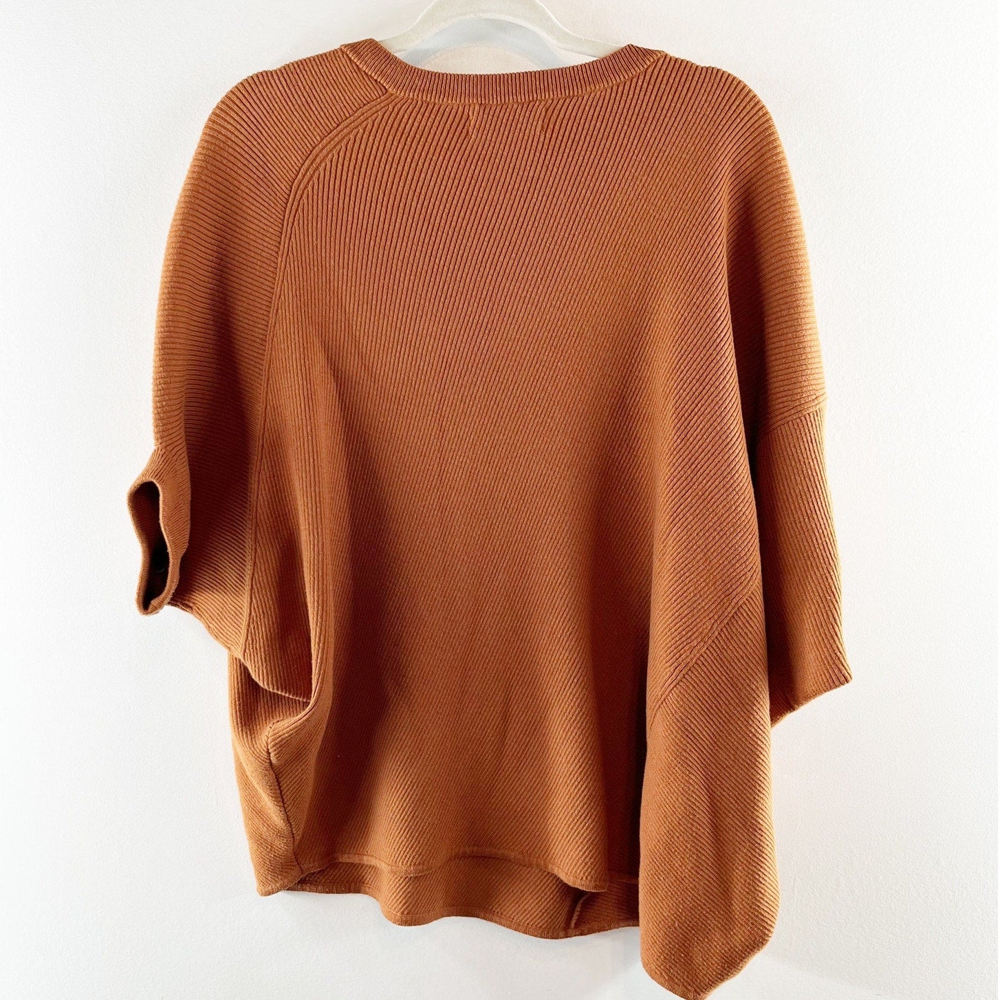 Anthropologie Vanessa Ribbed Knit Poncho Short Sleeve Sweater Rust Brown Medium