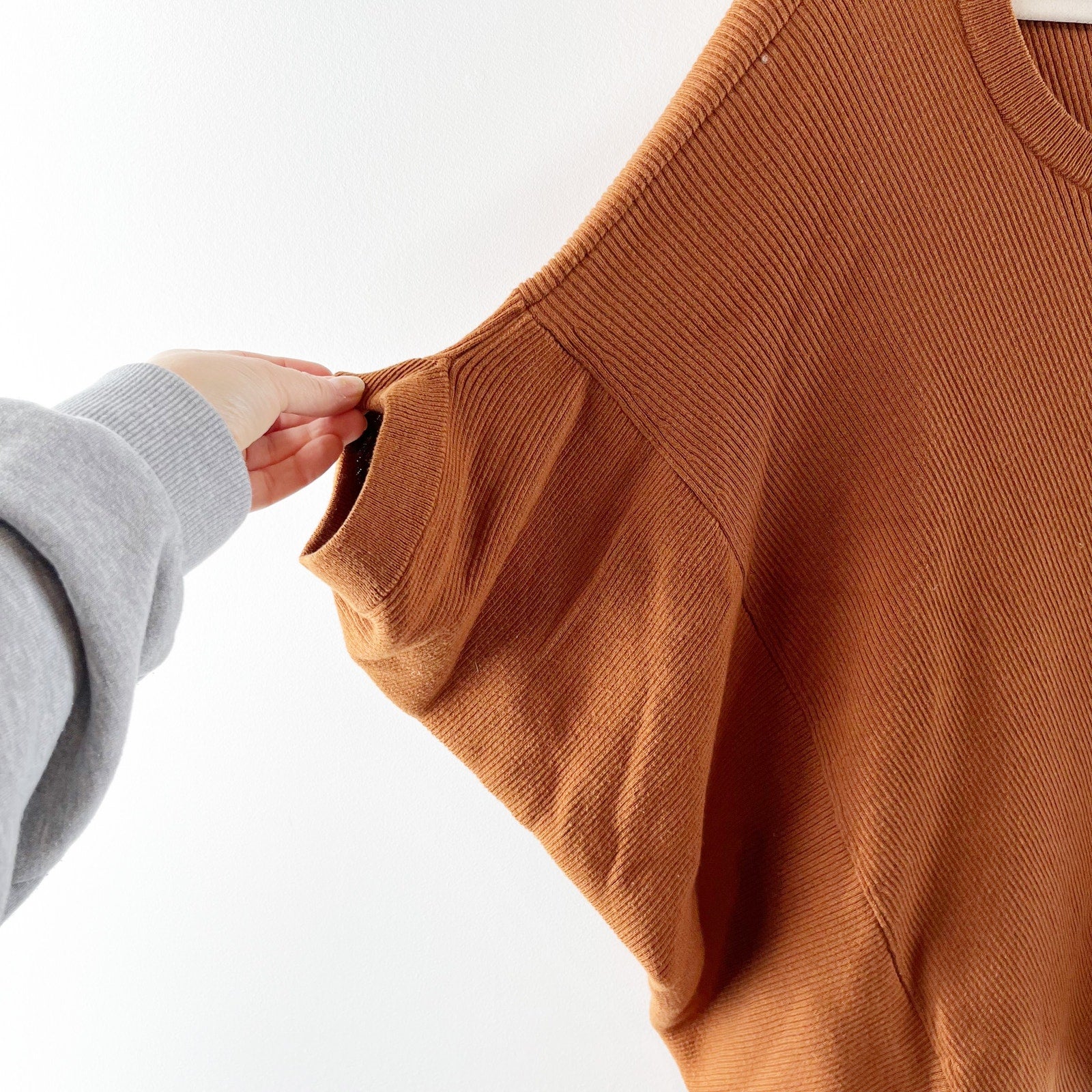 scoopneck, ribbed, short sleeves, poncho style, pullover, brown, fall, sweater, top, relaxed fit