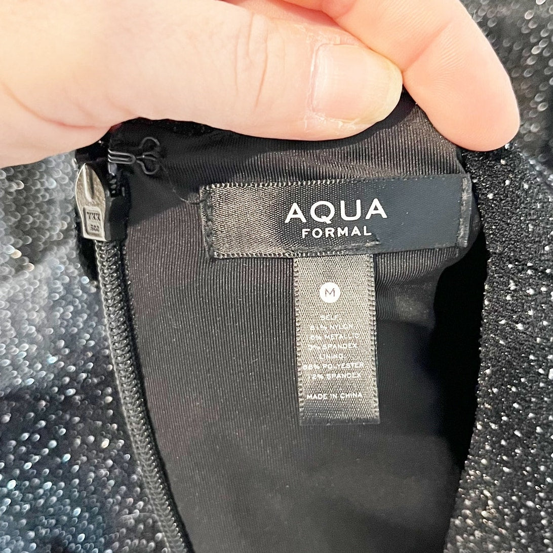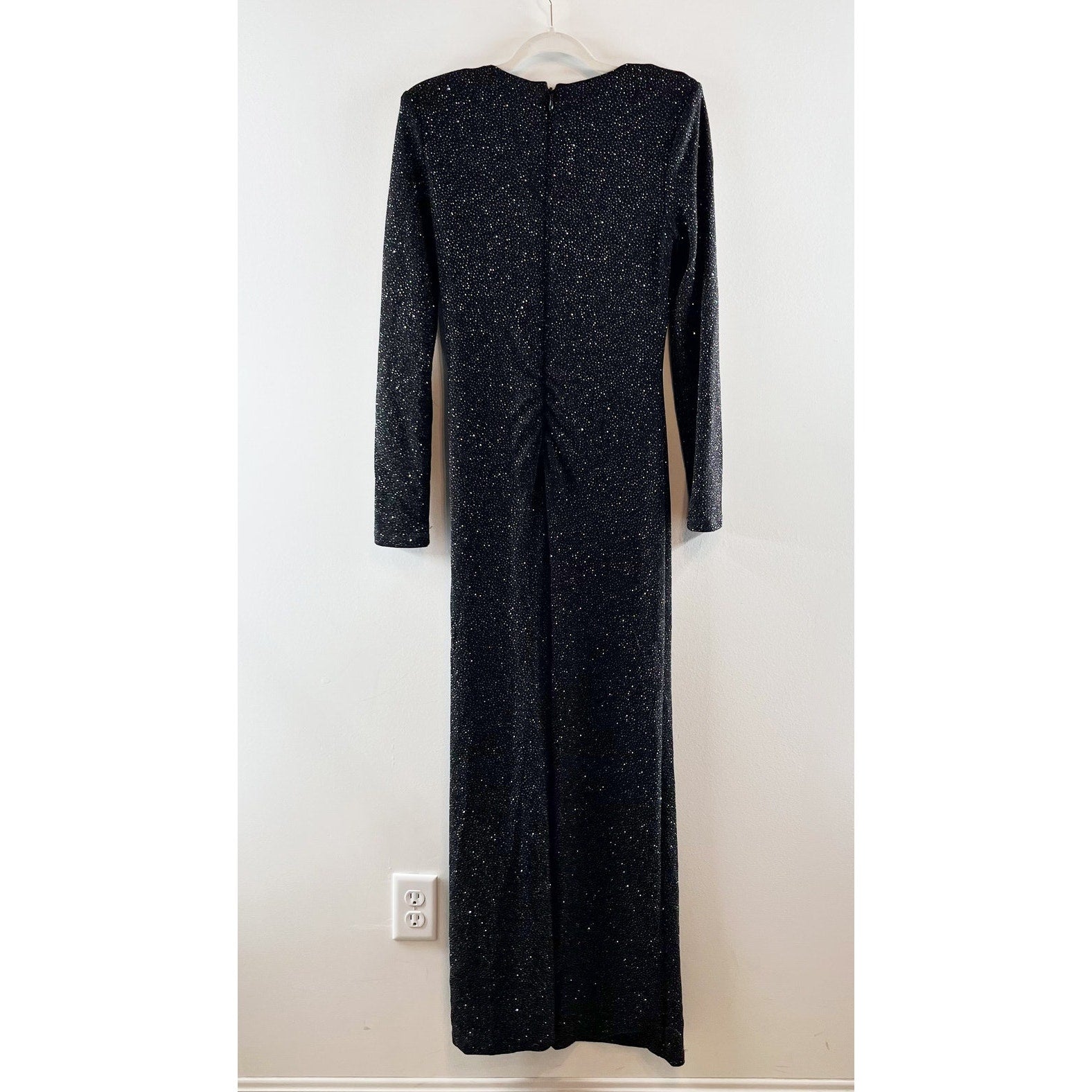 Aqua Formal Long Sleeve Shimmer Glitter Maxi Dress Gown Black Medium