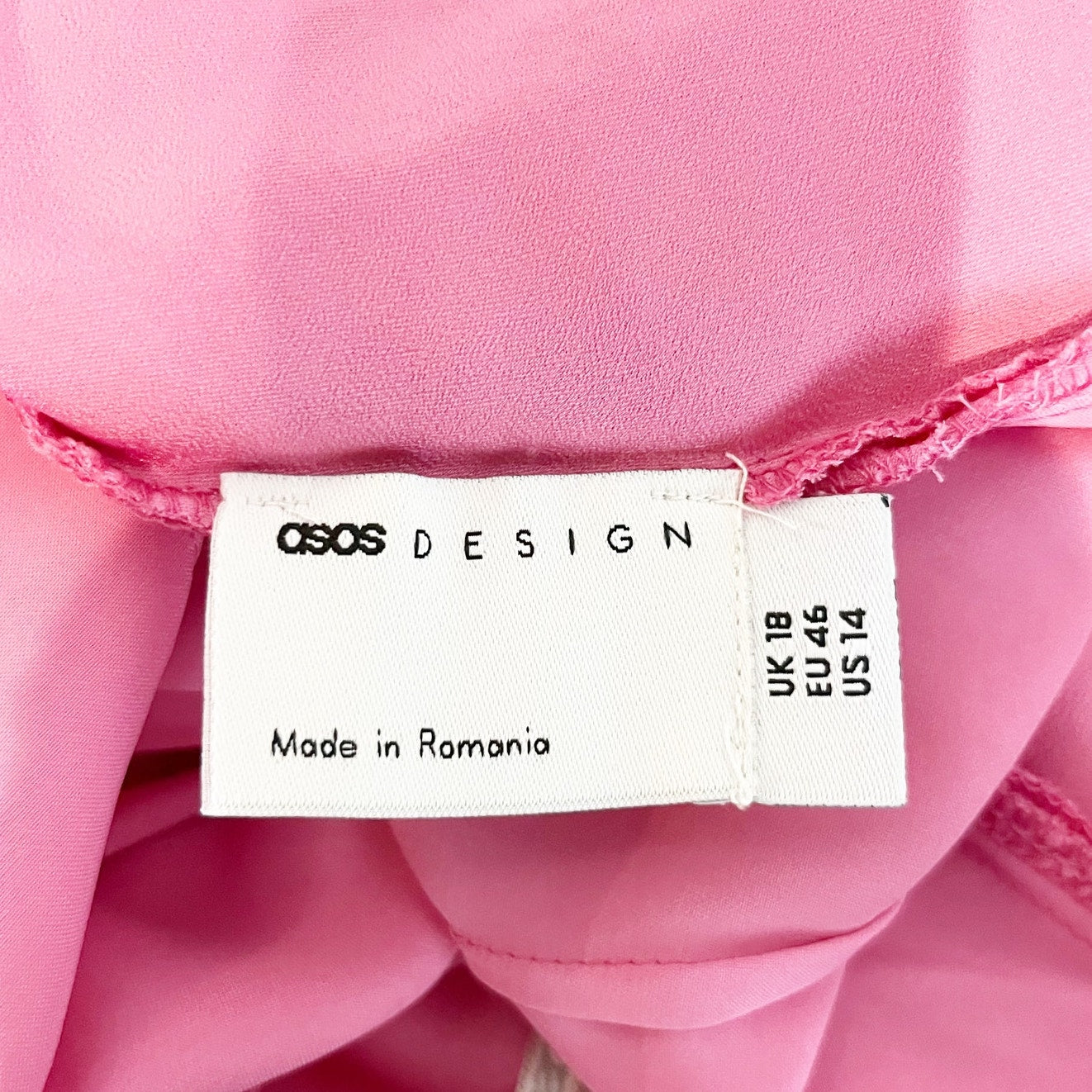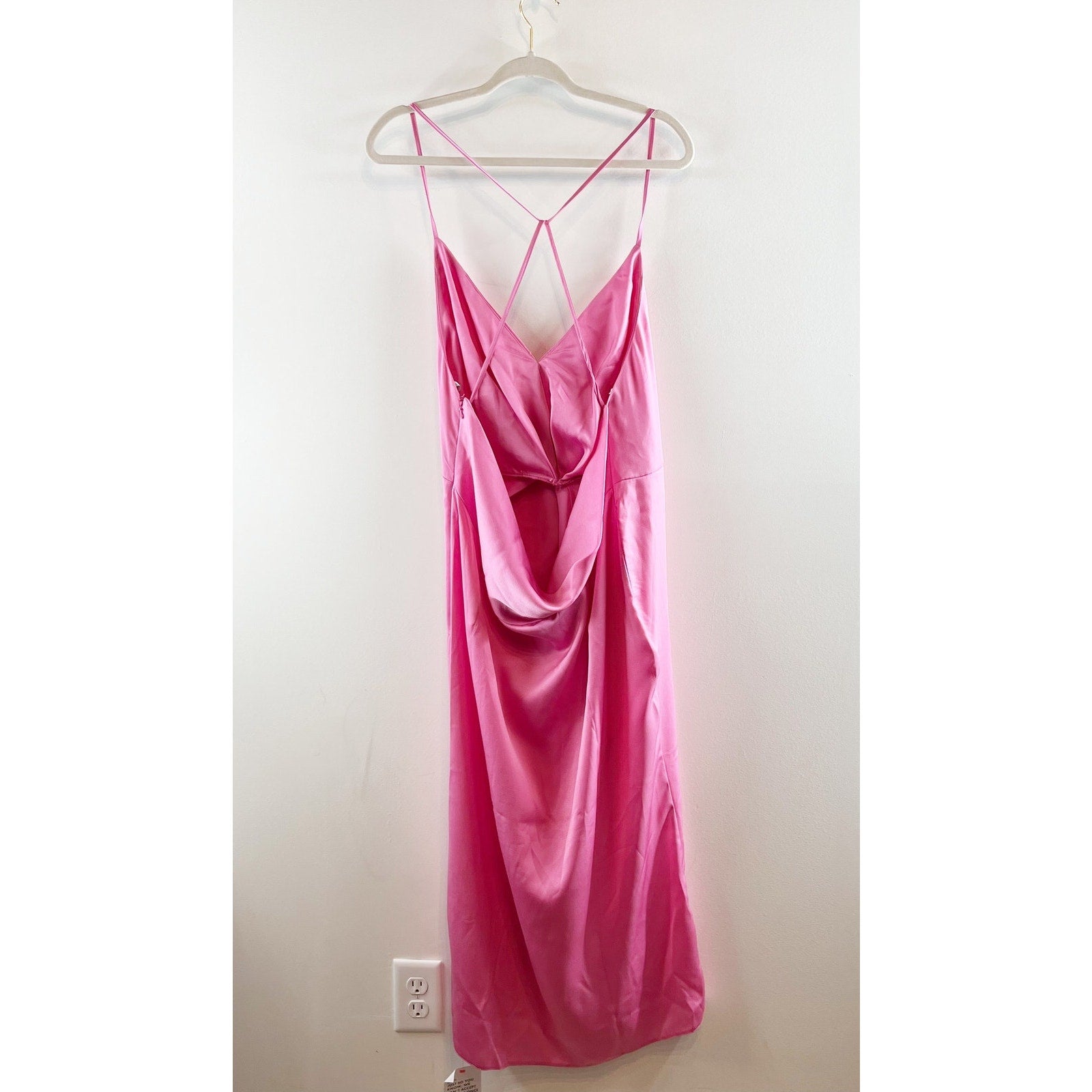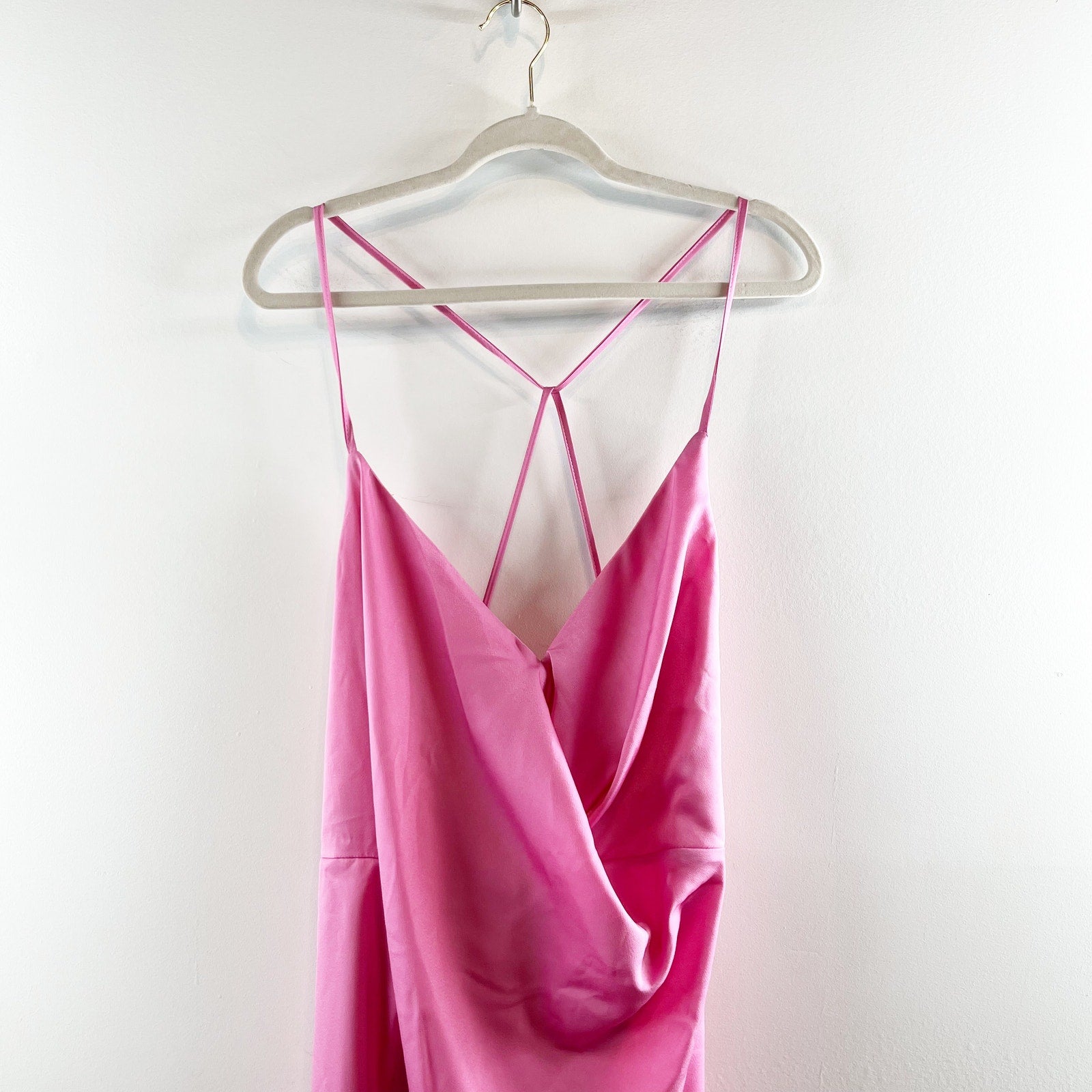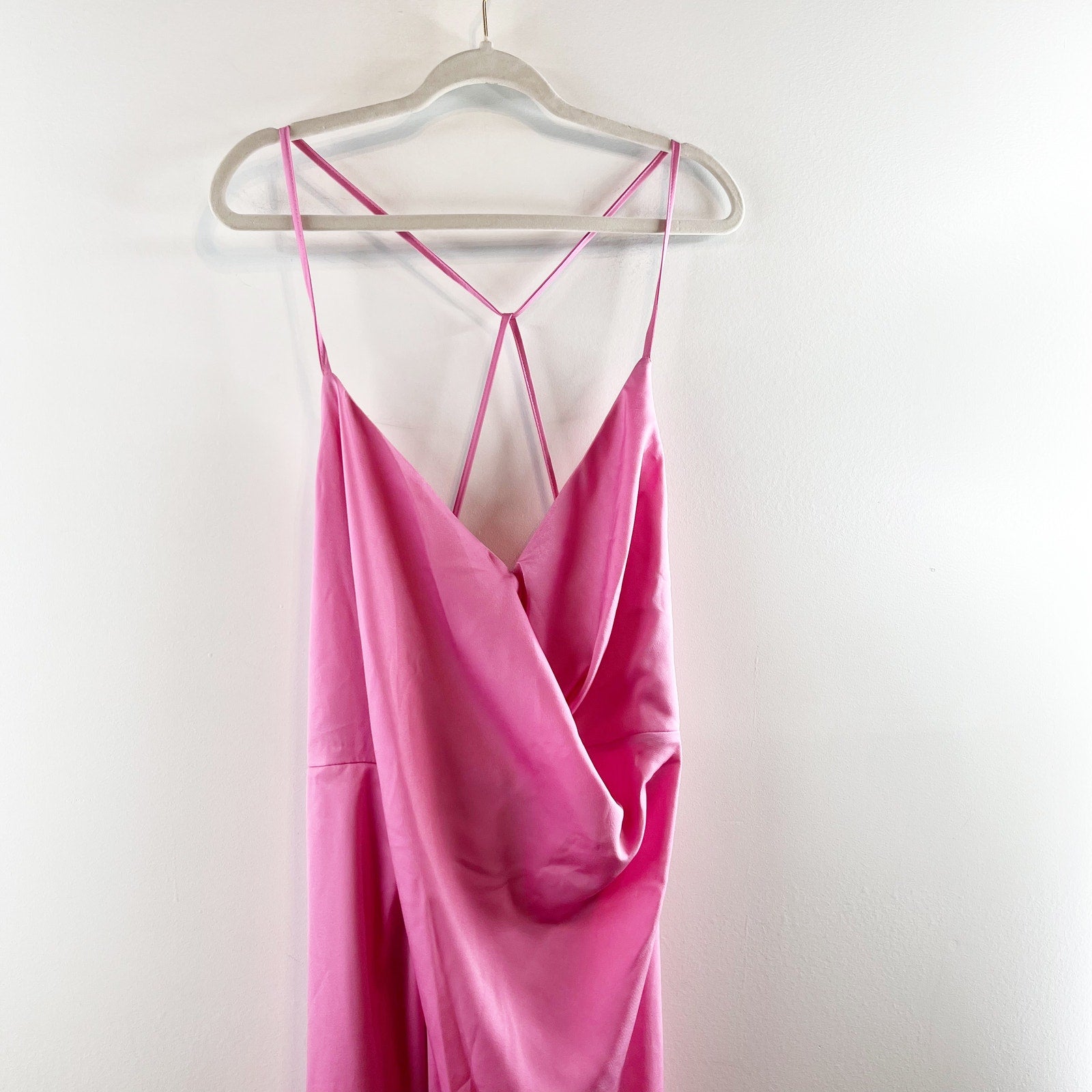 ASOS Design Draped Slit Strappy Low Back Satin Midi Dress Pink 14